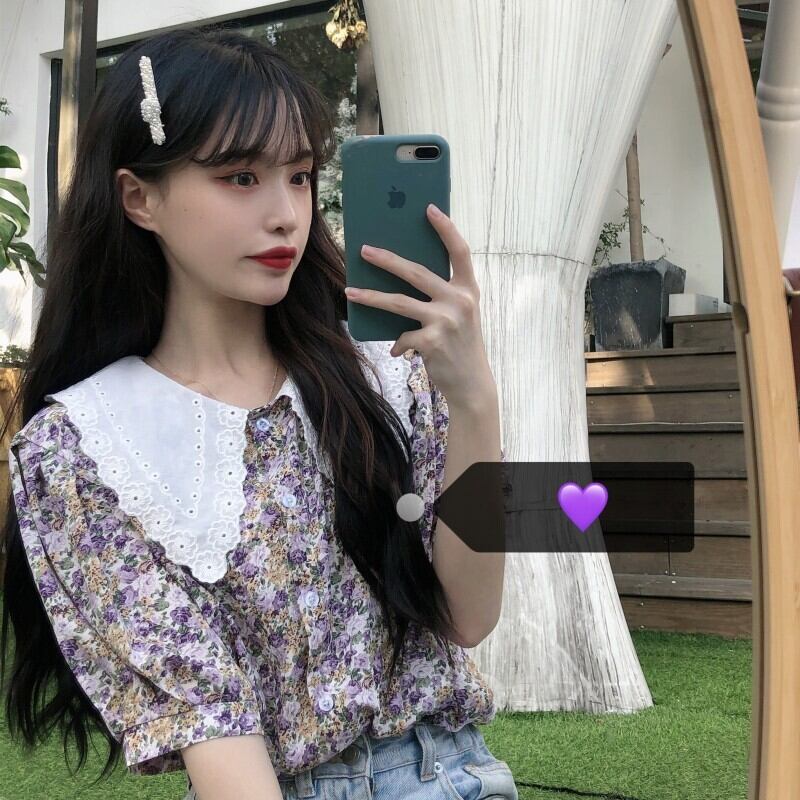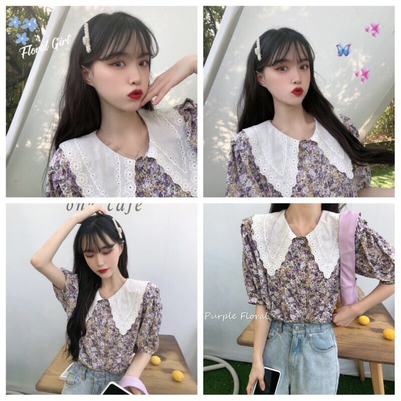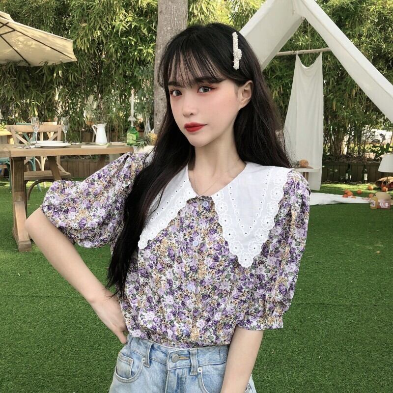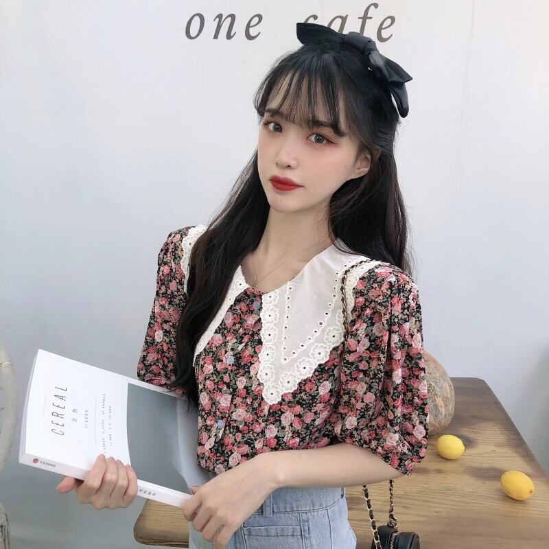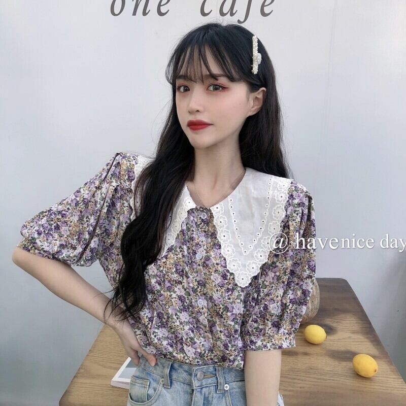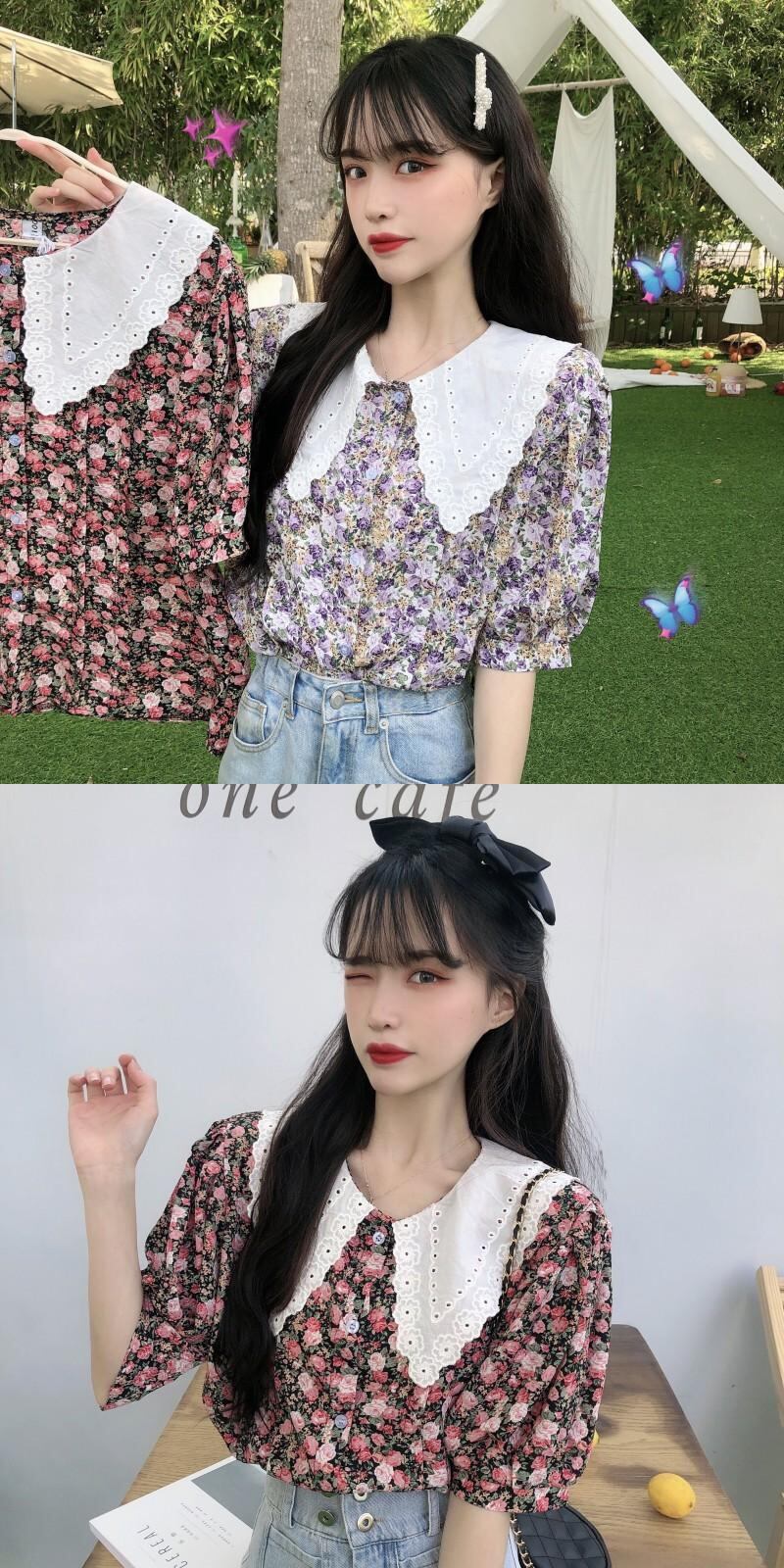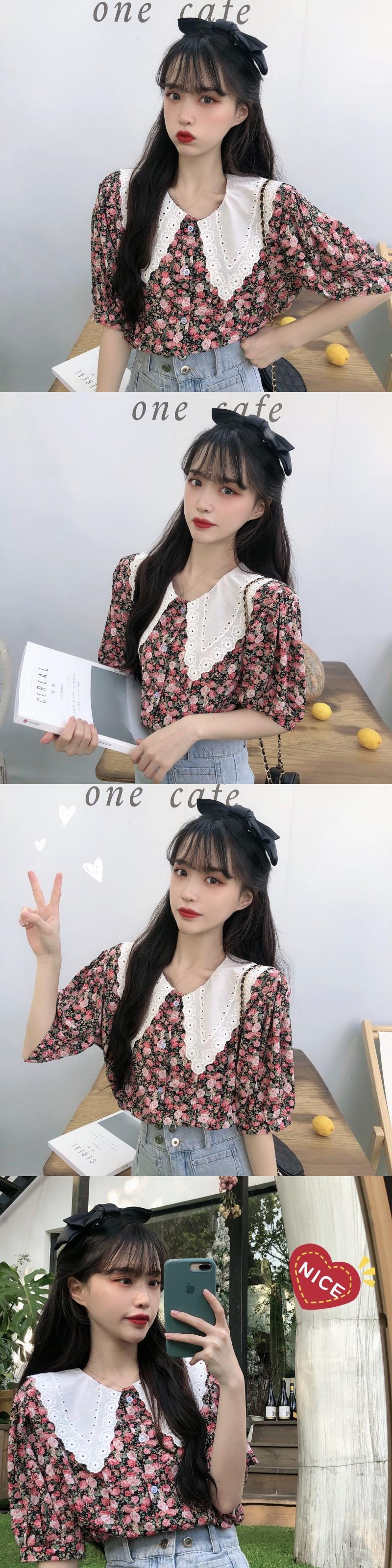 ガールズパフスリーブトップ2020サマーフローラルシャツレースドールカラー半袖シャツウエスタンスタイルカーディガントレンド 1号婦人81280862957
