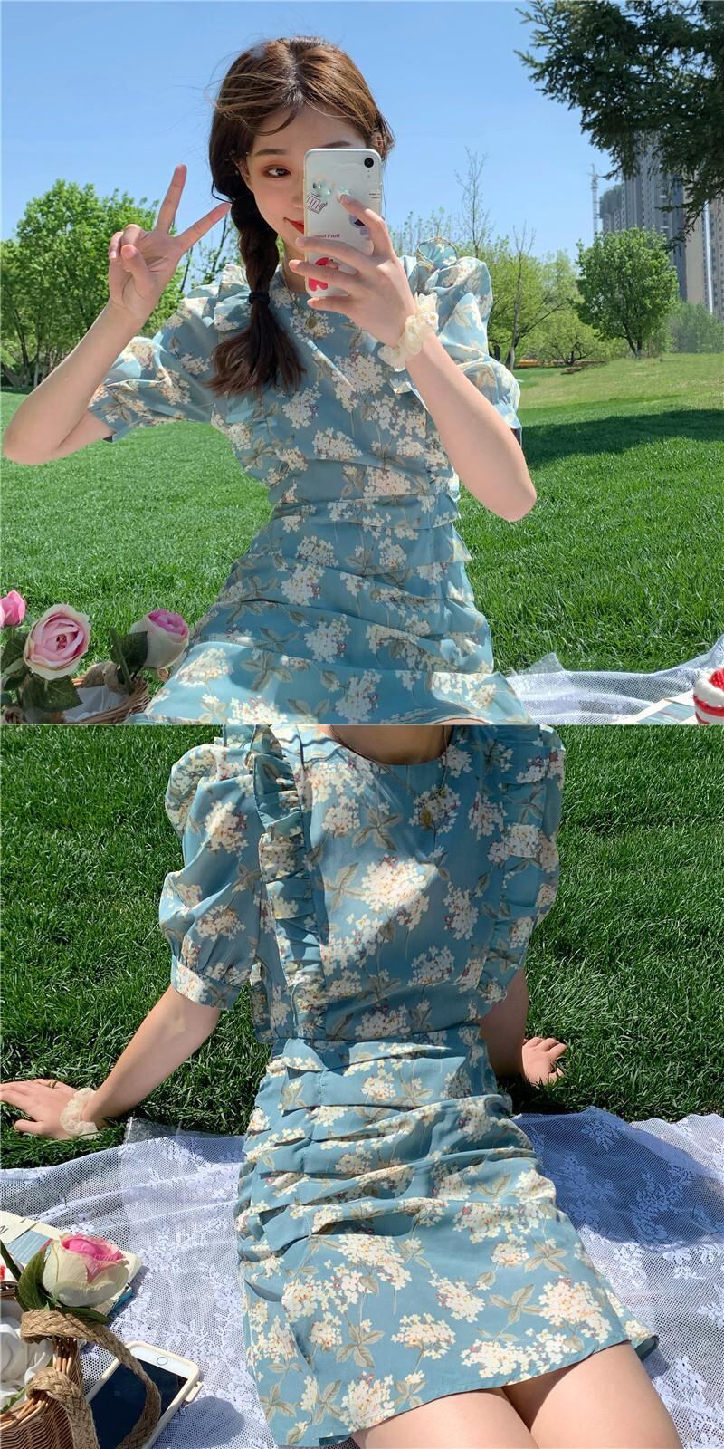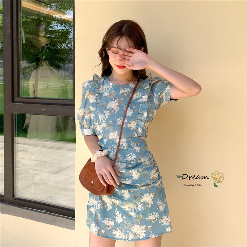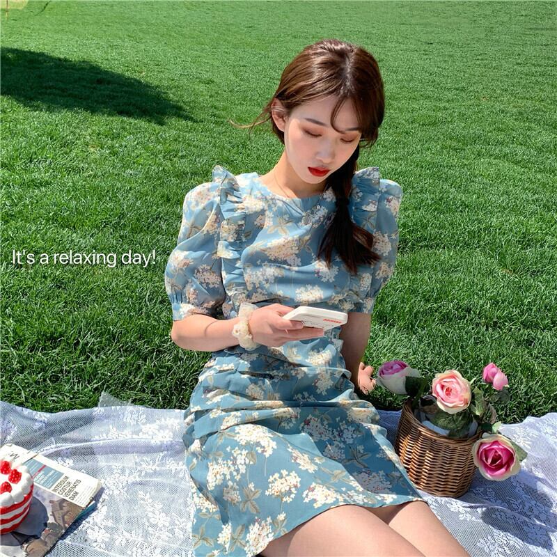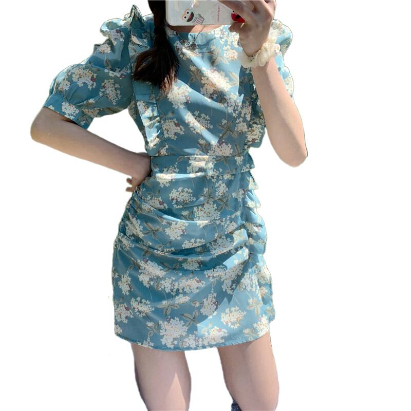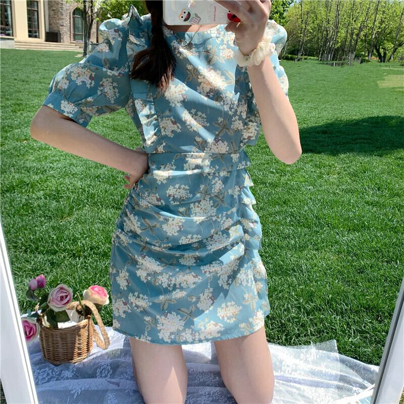 気質ドレスの女神ファン2020新しいサマードレスはウエストを折りたたむ細いAラインスカートフレンチフローラルスカート 1号婦人45375876323
