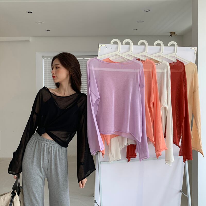 パースペクティブ長袖日焼け止めTシャツレディースサマードレス2020新しいルーズシンブラウスプルオーバーパープルトップス 1号婦人96031024320