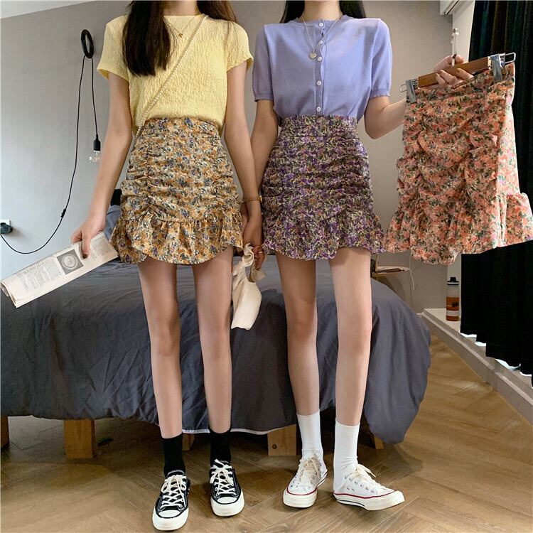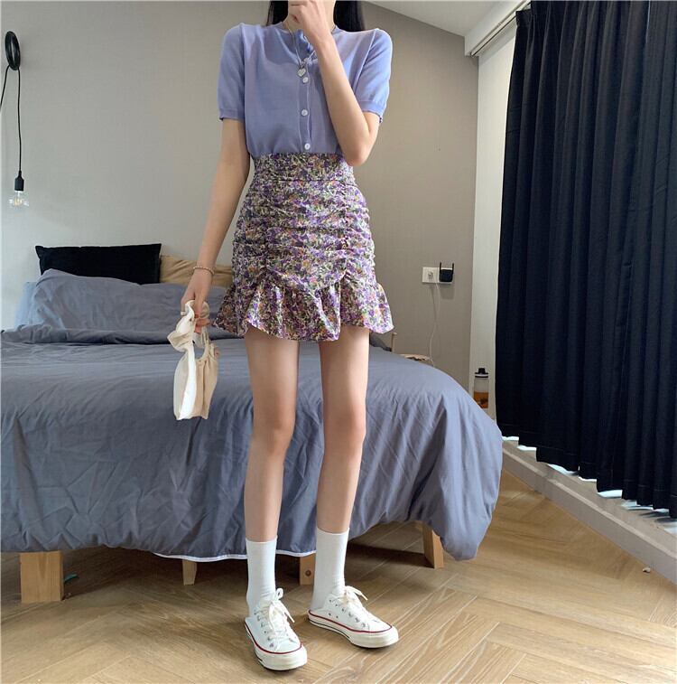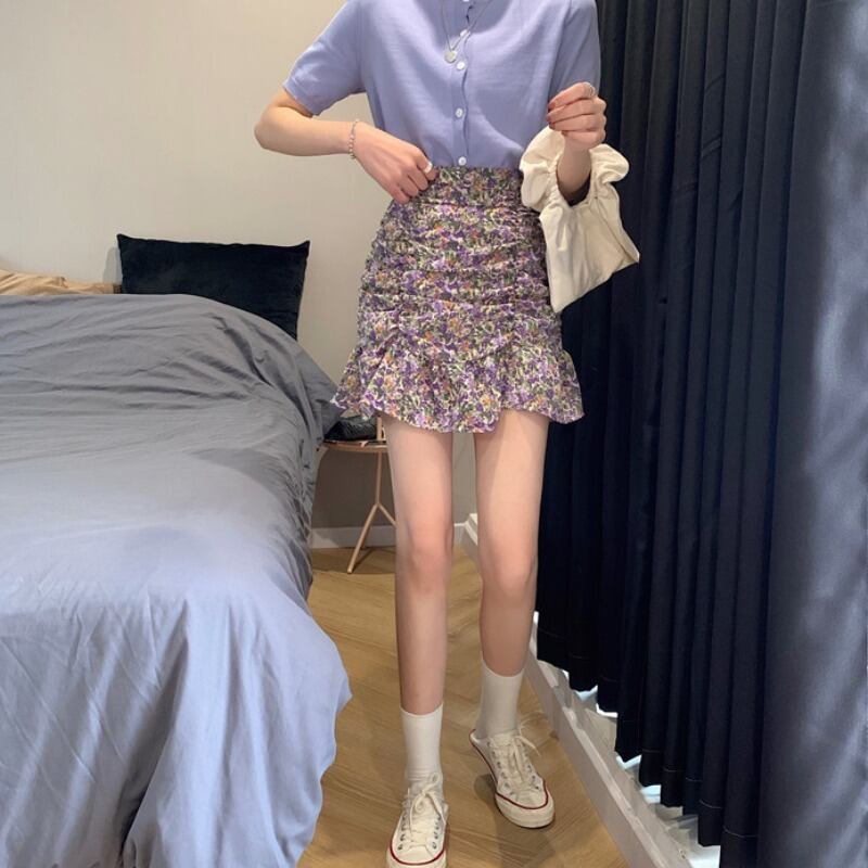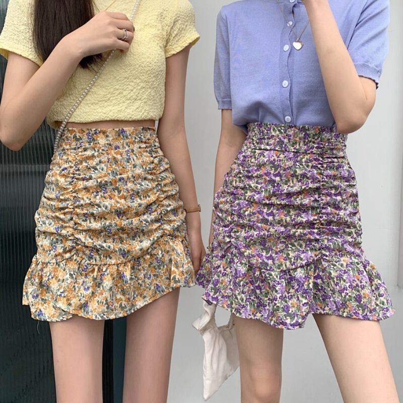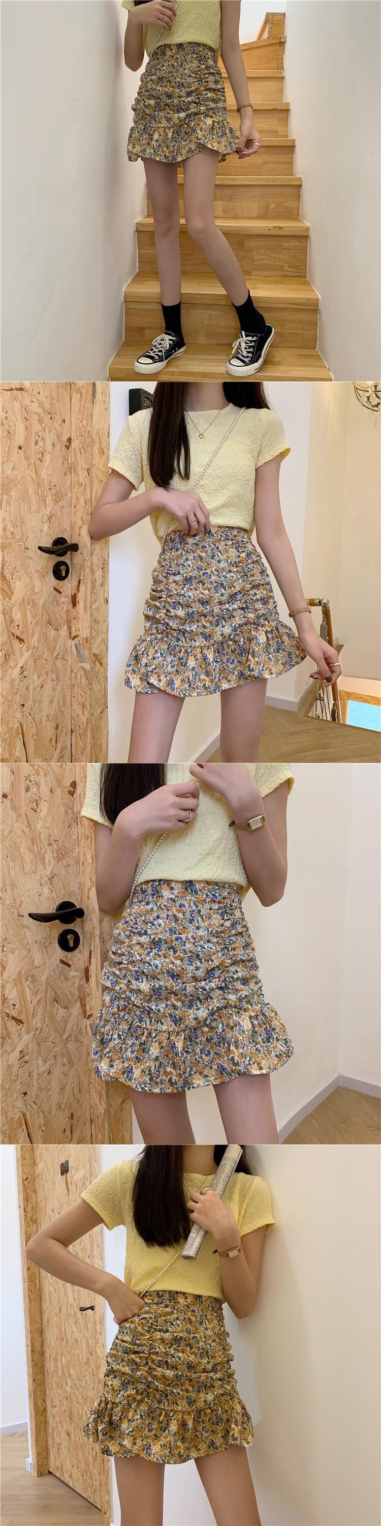 ハーフレングススカートAラインスカート2020夏新作ハイウエスト薄手フローラルスカート気質蓮の葉スカート 1号婦人79129021220