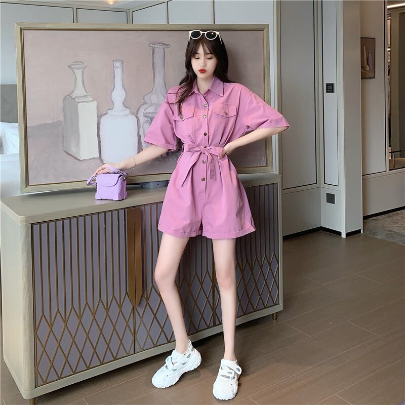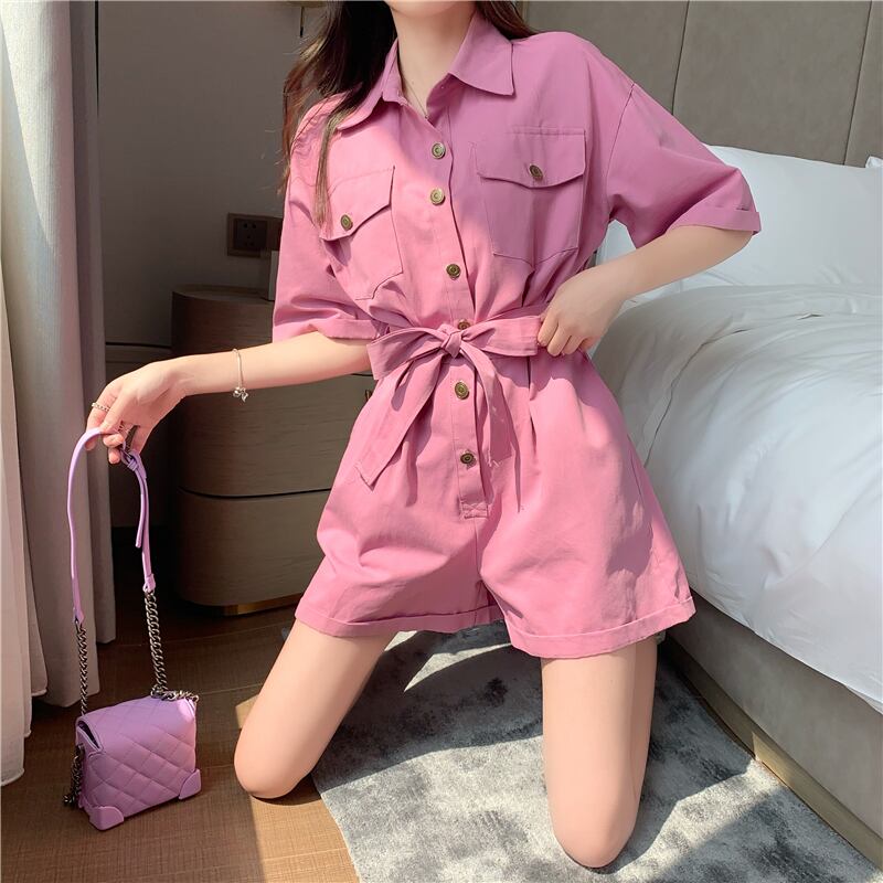 オーバーオールレディース2020夏新作スリムハイウエストレースアップカジュアルパンツ学生ルーズジャンプスーツワイドレッグパンツ 1号婦人65993672586