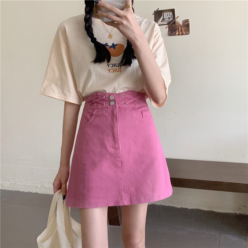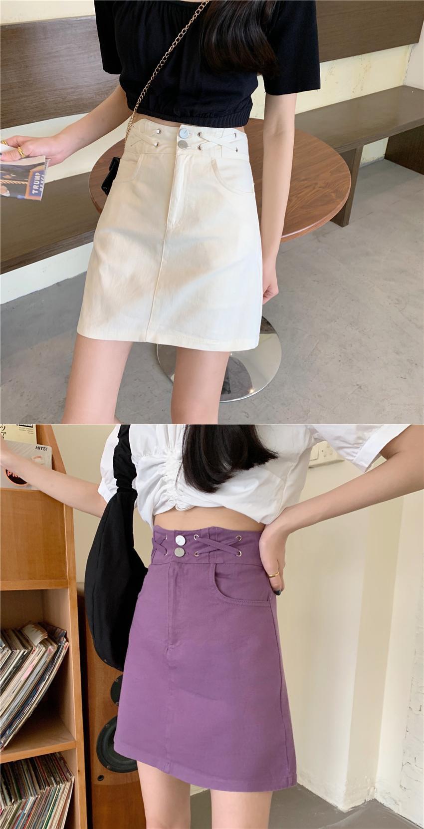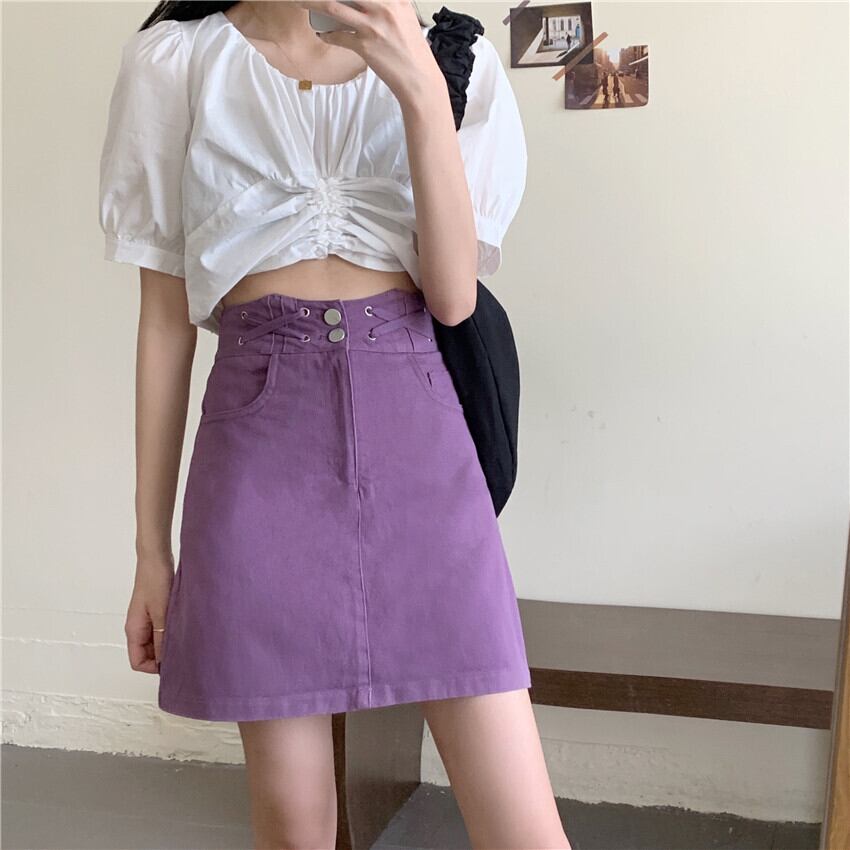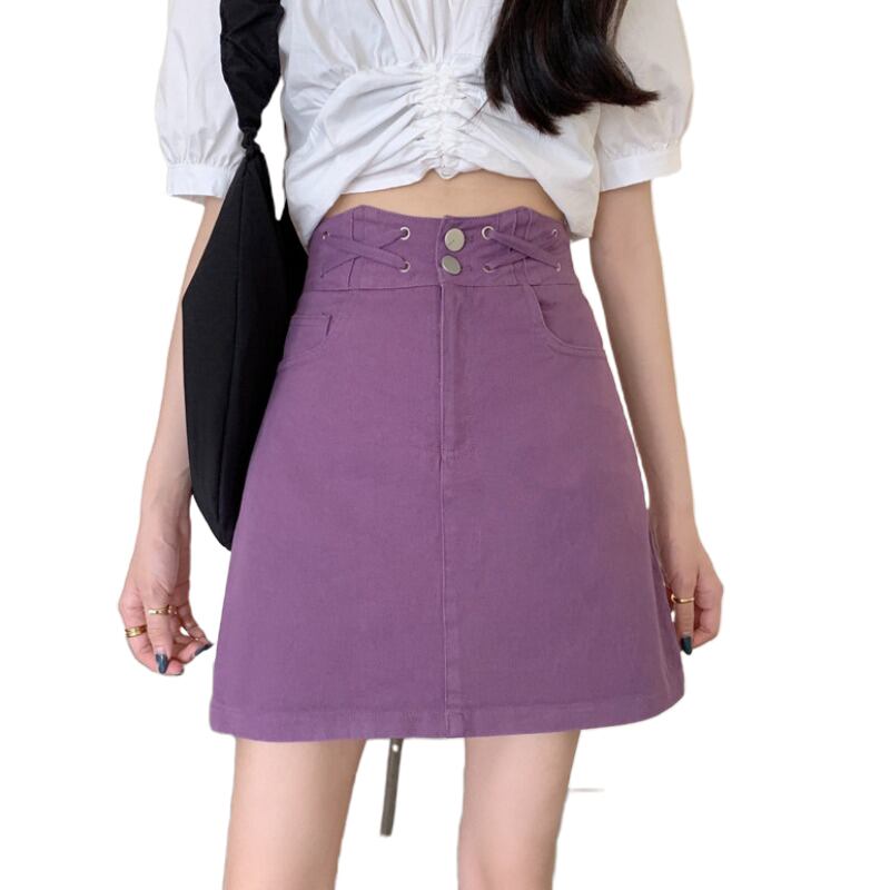 2020年夏のハイウエストスリムAラインデニムスカートオールマッチスチューデントパープルショートスカートの新女性バージョン 1号婦人29851226149