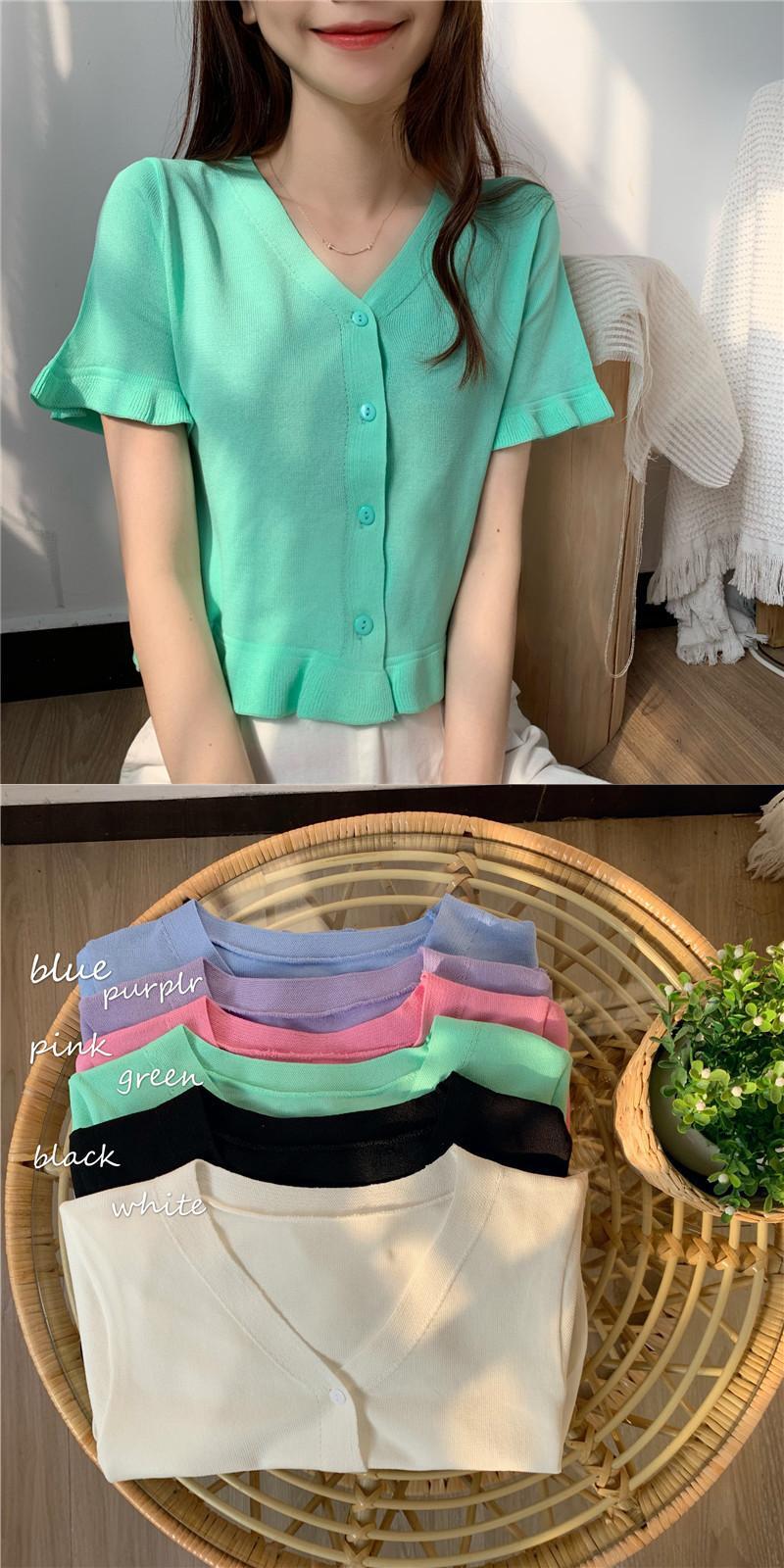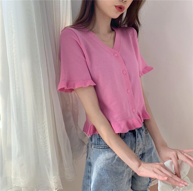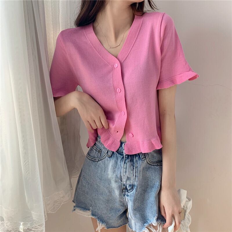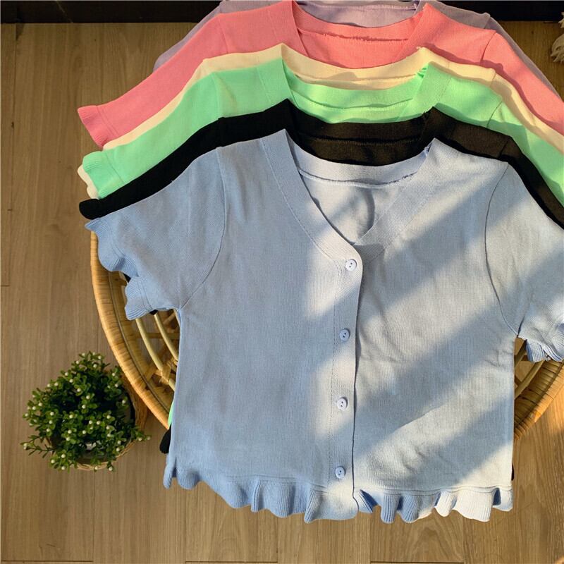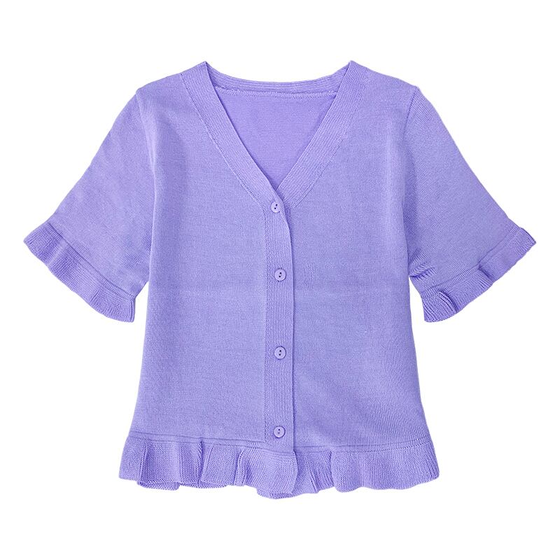 パープルトップレディースサマードレス2020新しいアウターショートスタイル学生Vネック半袖Tシャツオールマッチニットカーディガン 1号婦人70907842584