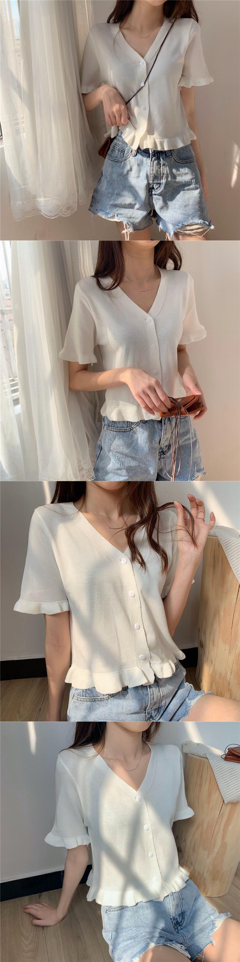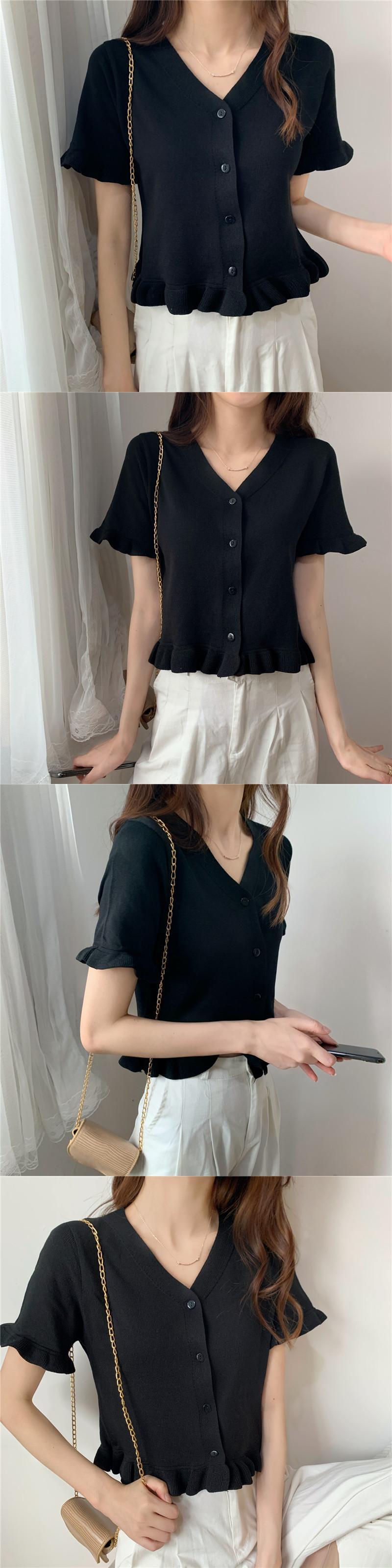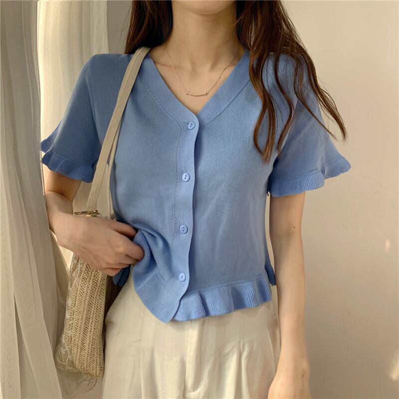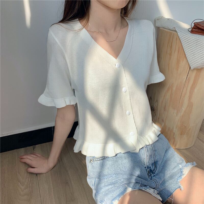 パープルトップレディースサマードレス2020新しいアウターショートスタイル学生Vネック半袖Tシャツオールマッチニットカーディガン 1号婦人70907842584