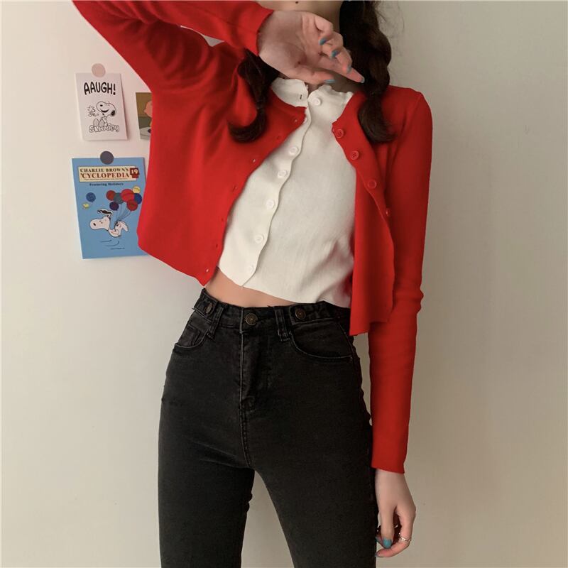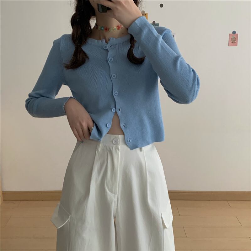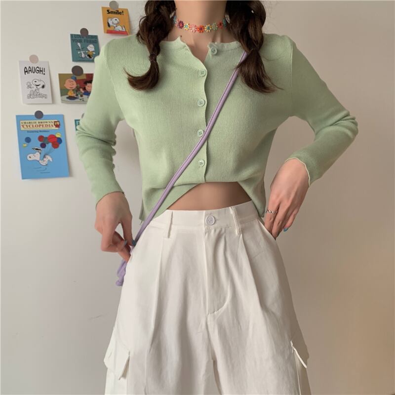 クロップドセーターショートトップ女性2020年夏新しいスリムスリムホワイト長袖カーディガン薄手のコート 1号婦人37881720350