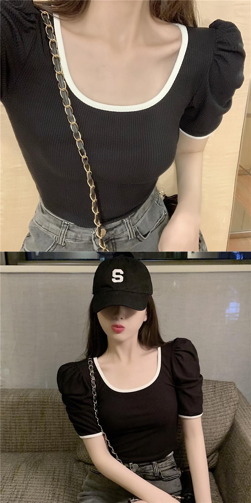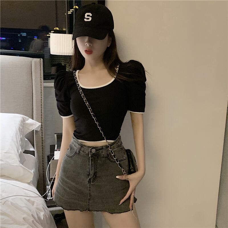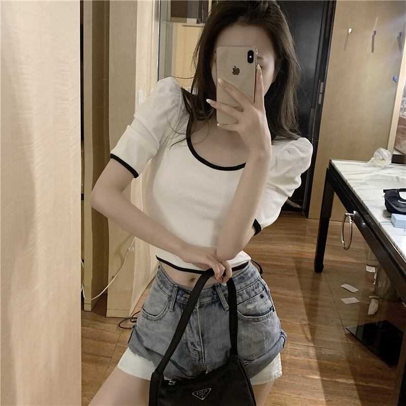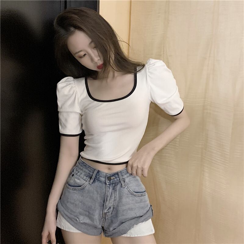 半袖の女性の2020年夏の新しいスタイルの洋風ボトミングシャツのカラーマッチング薄いTシャツネットレッドトップインスーパー 1号婦人15700609144