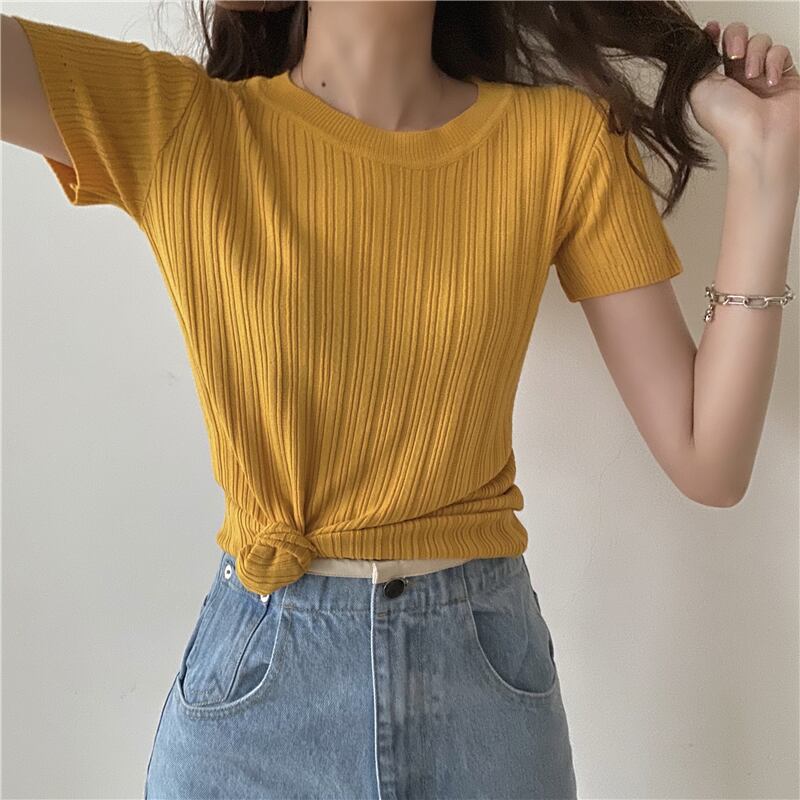 半袖Tシャツレディース2020年夏ニューネットレッドインスーパーファイヤースリムスリミングニットボトミングシャツカジュアルトップ 1号婦人95733576167