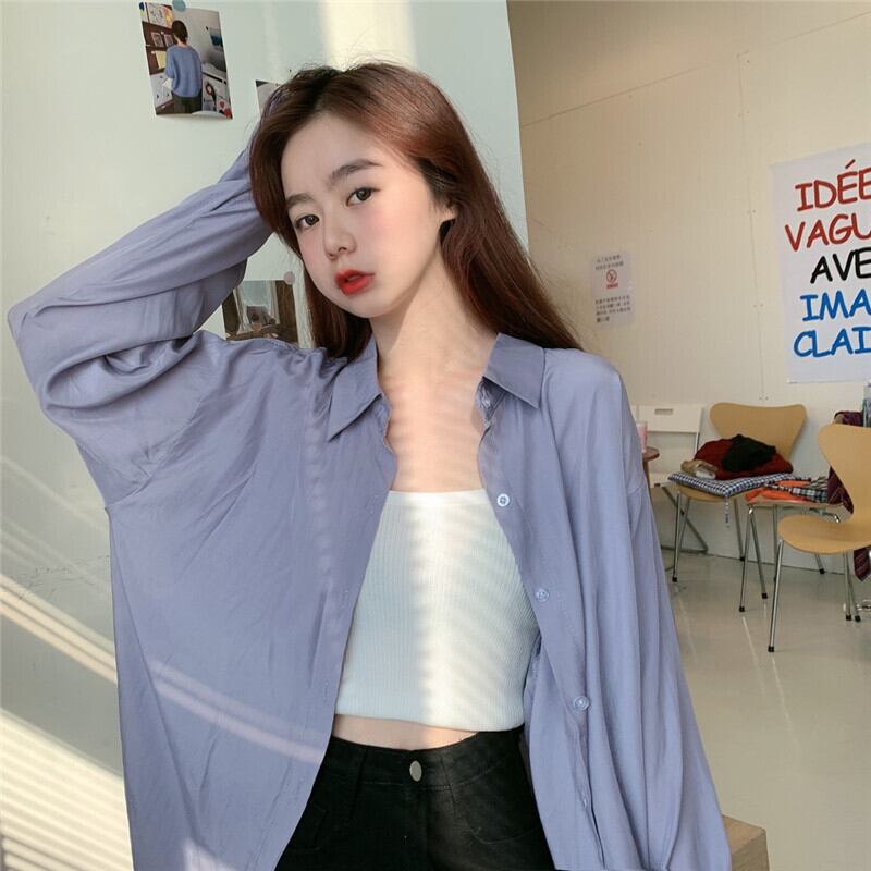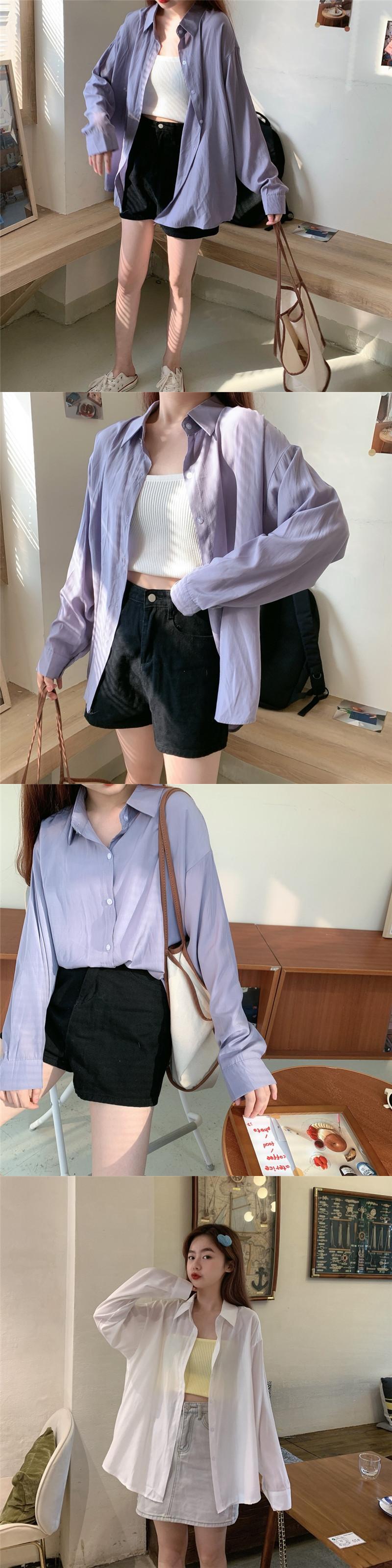 パープルシャツレディース新しい2020レトロ香港フレーバー日焼け止めカーディガンルーズミドル丈長袖トップス 1号婦人91496831868