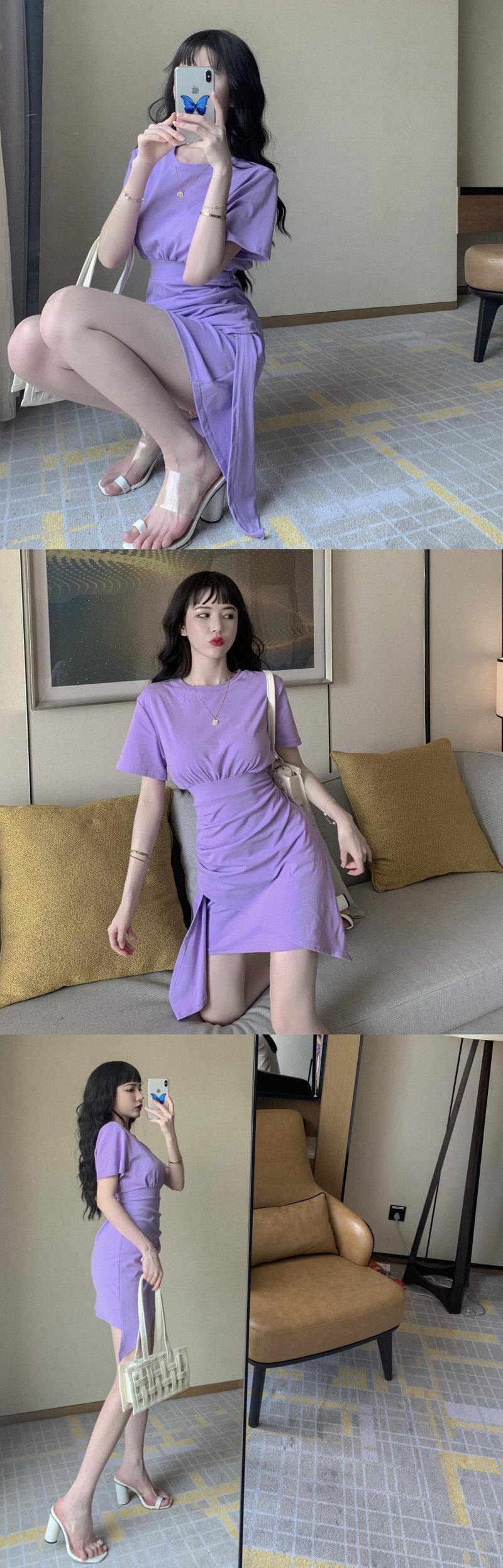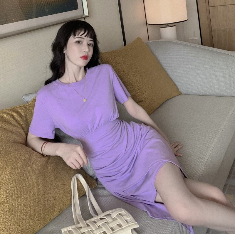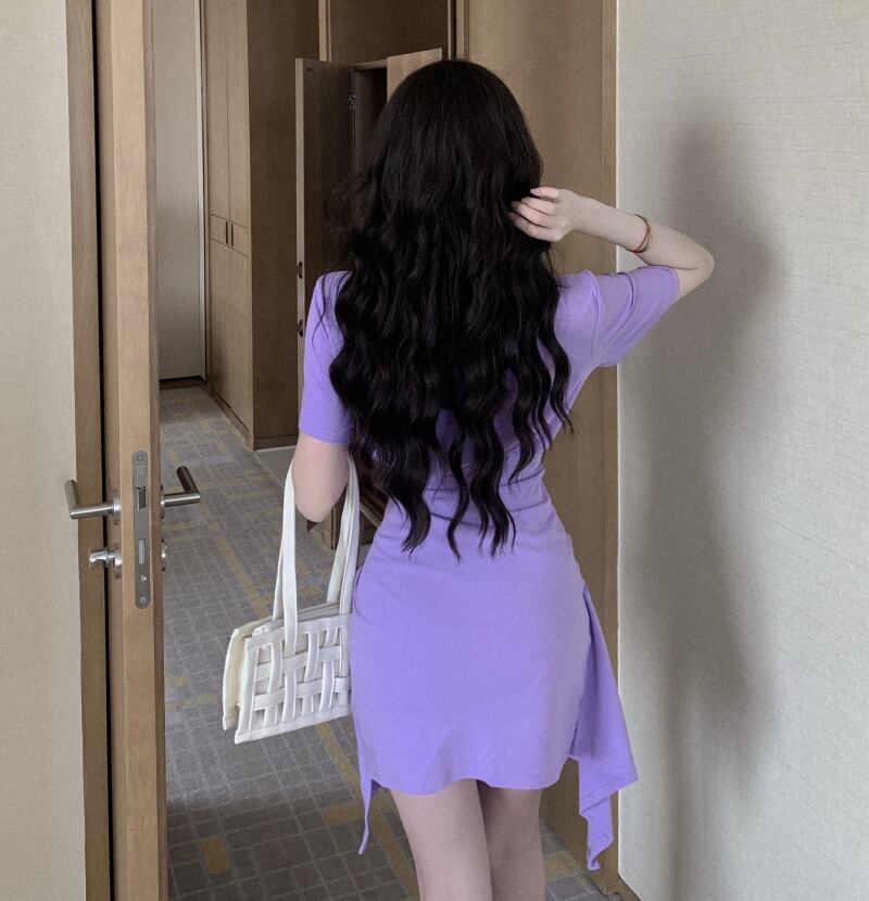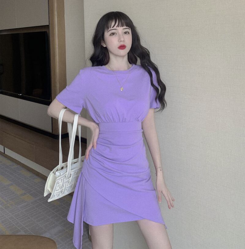 フレンチパープルドレス女性202歳0新しいサマードレスウエストは細く、不規則な気質、Aラインショートスカート潮 1号婦人32555330574