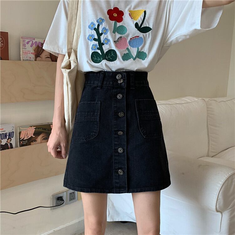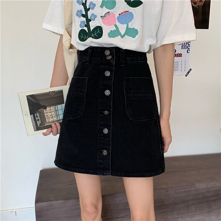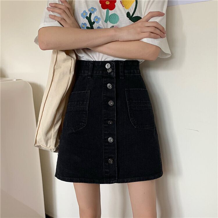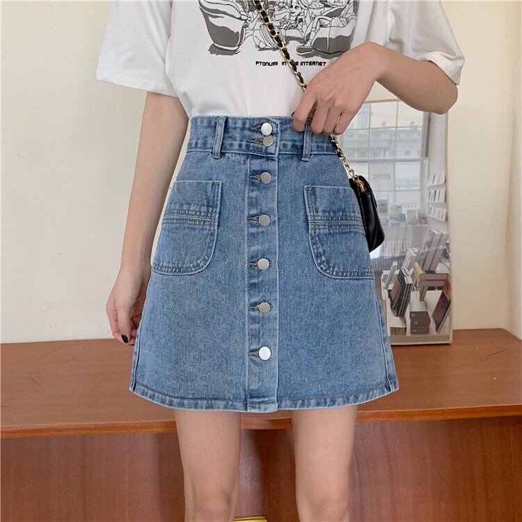 ハーフレングススカートAラインスカート2020年夏新人格ブレストハイウエスト薄デニムスカート学生ショートスカート 1号婦人43851808139