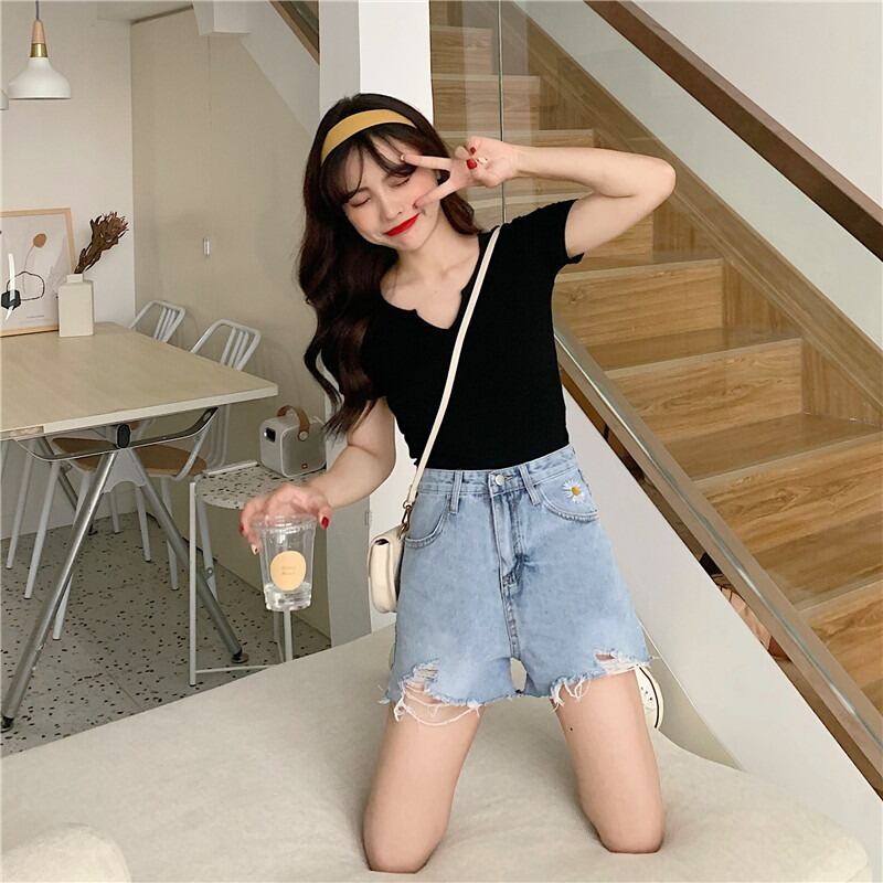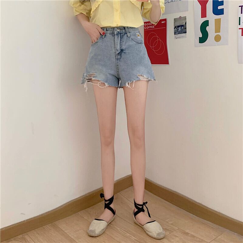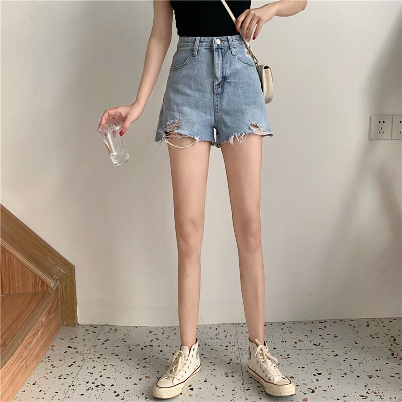 デニムショートパンツレディース2020新夏ハイウエストルーズシンストレートレッグパンツ学生破れたパンツワイドレッグパンツ 1号婦人54557966517