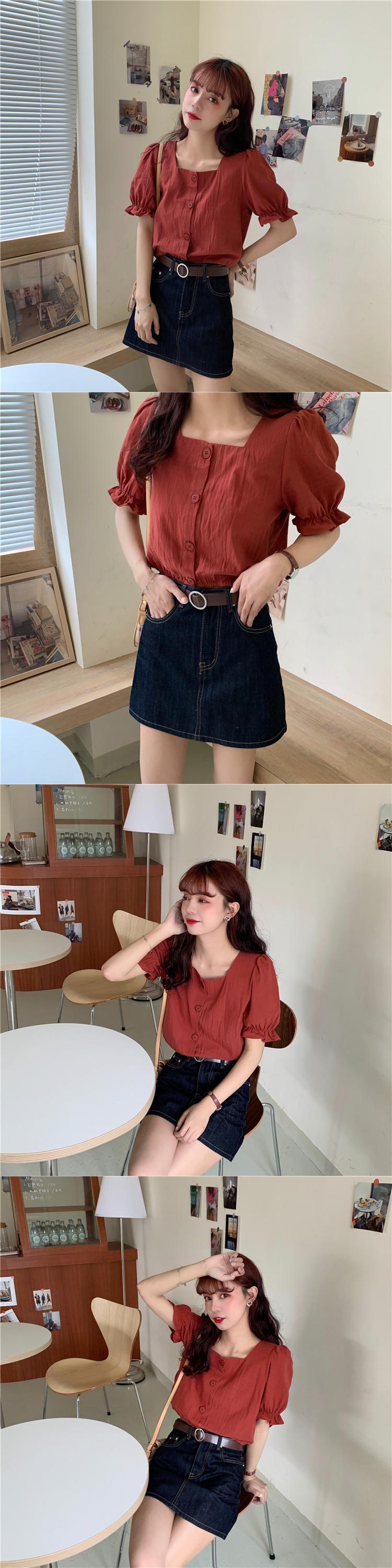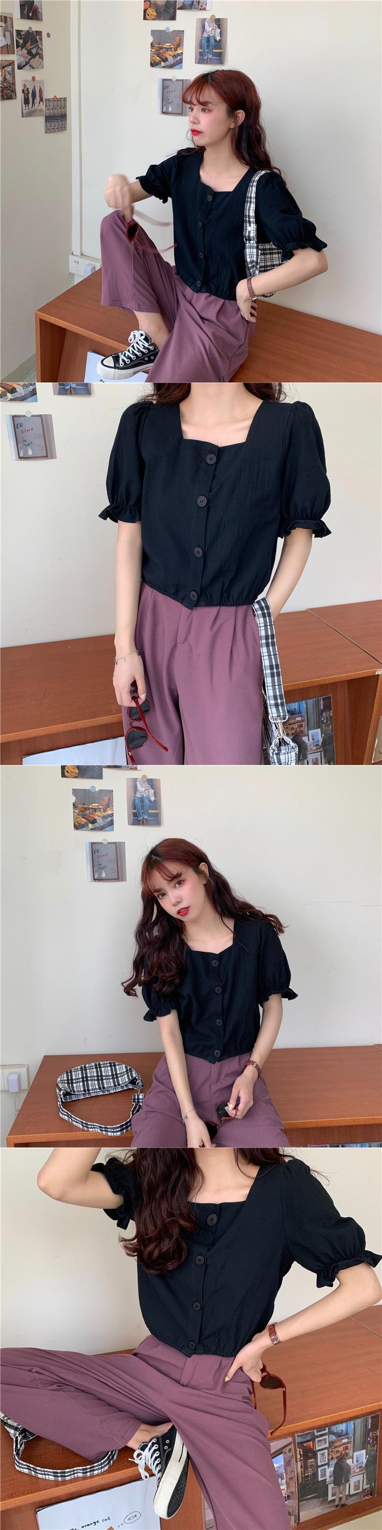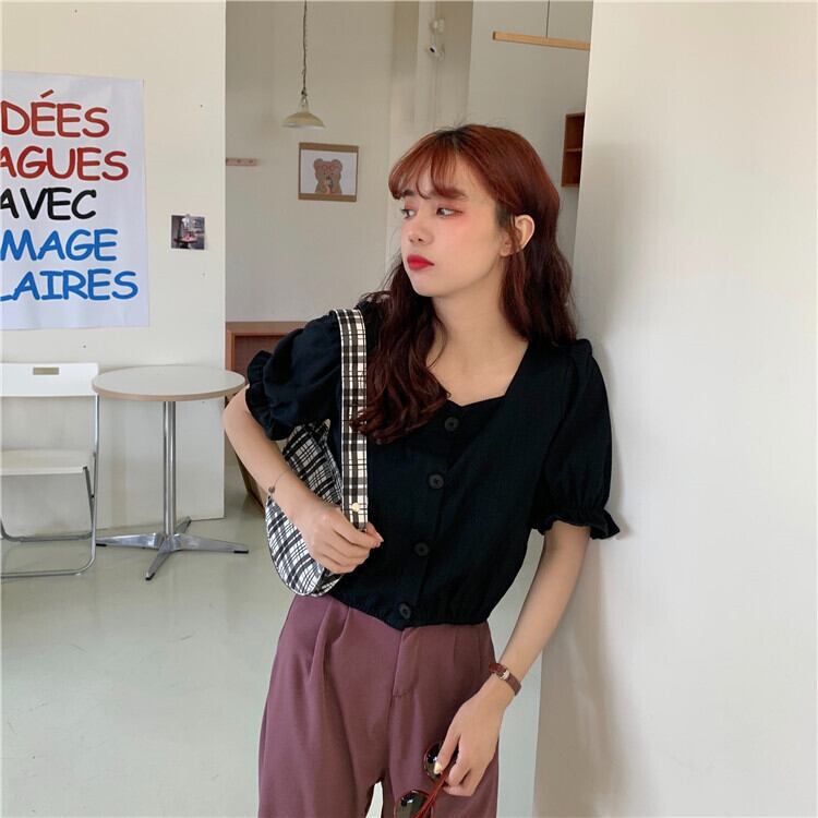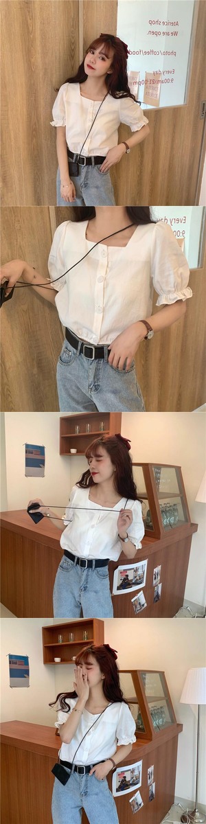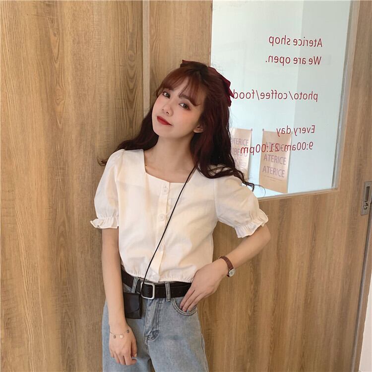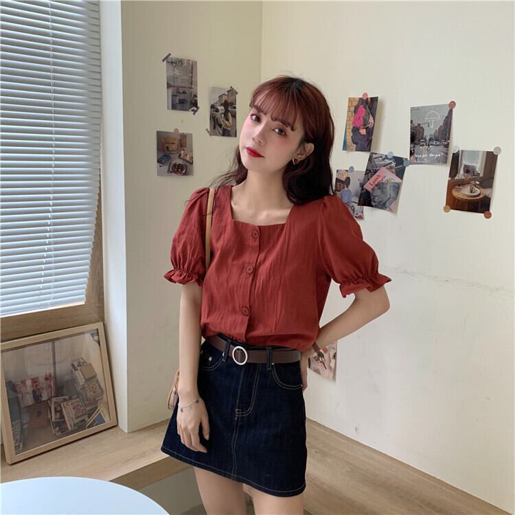 シャツの女性2020年夏の新しい香港スタイルのレトロな宮殿Yanfeng気質スクエアネックスリム半袖シャツトップ 1号婦人40245491100
