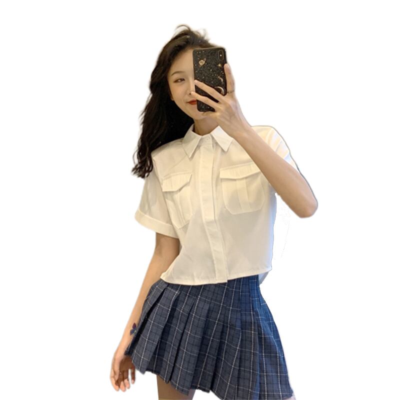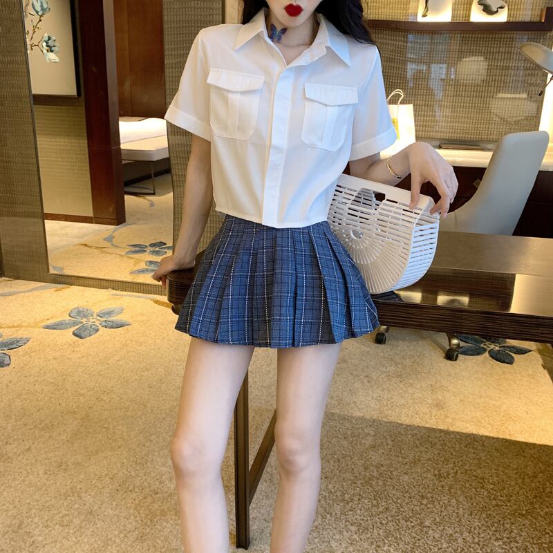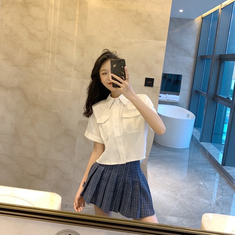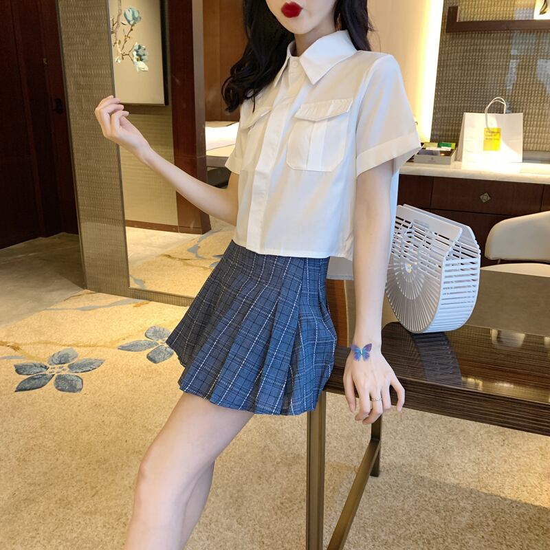 2020年夏の新作女性香港スタイルスーツ半袖デザインセンスニッチシャツハイウエストスカートスカートツーピーススーツ 1号婦人96507671347