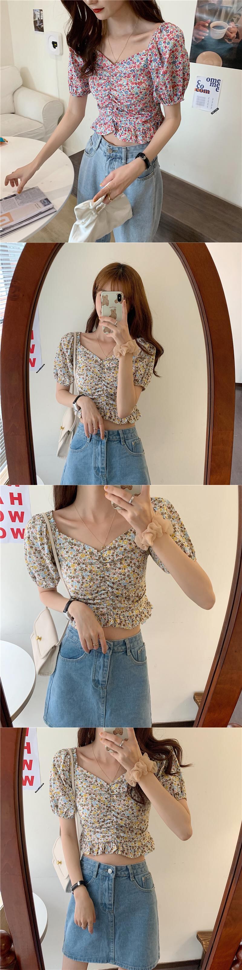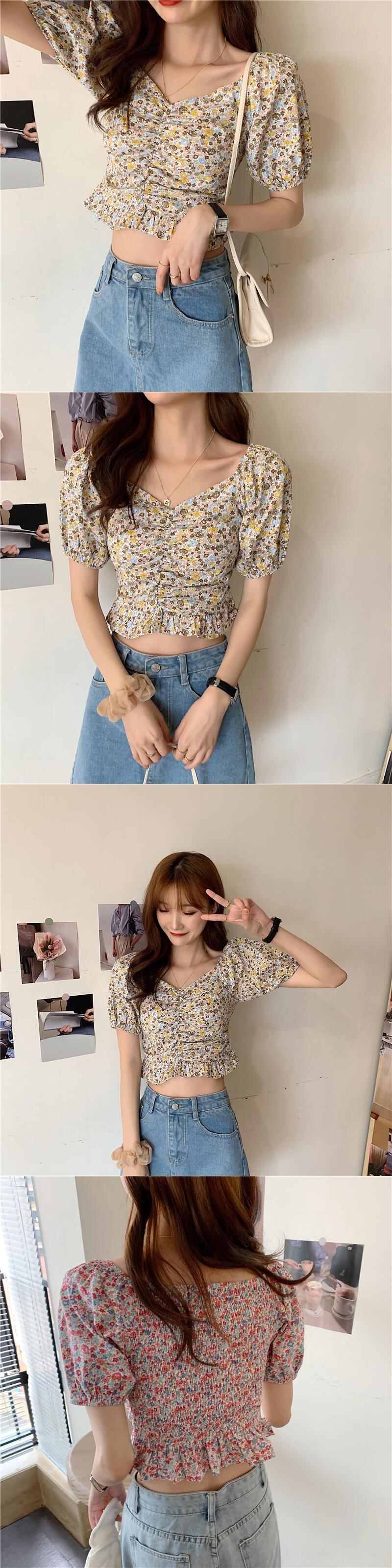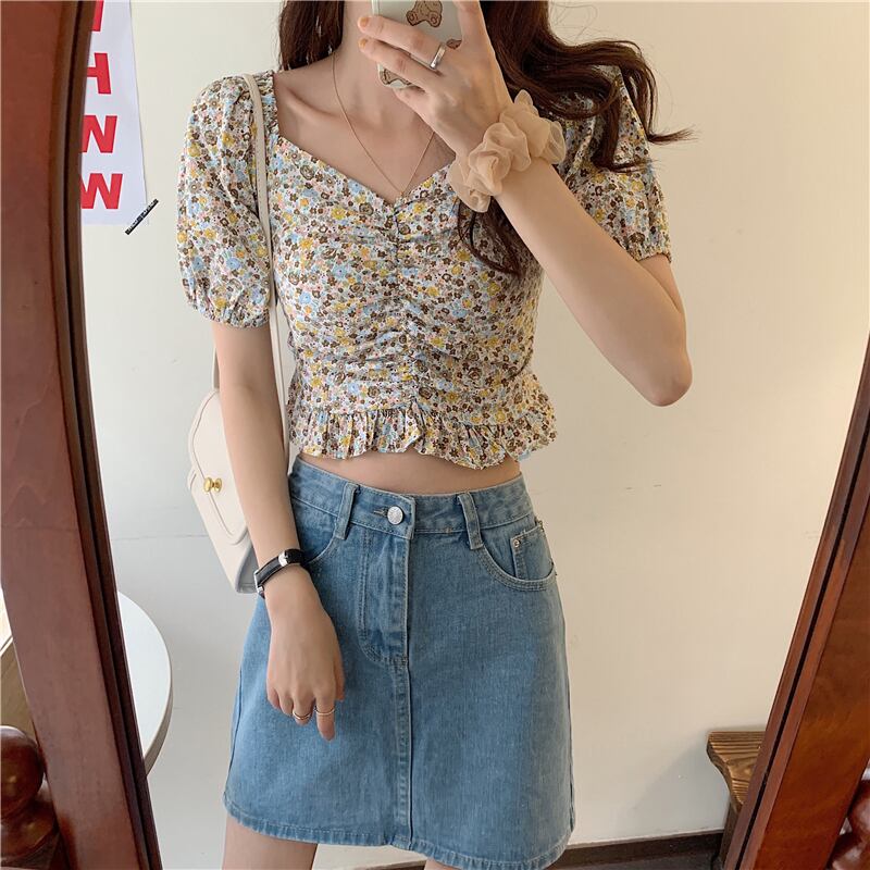 鎖骨トップスキームデザインニッチシャツ女性2020夏新しいレトロフローラル半袖シャツ 1号婦人88270217259