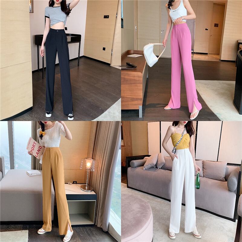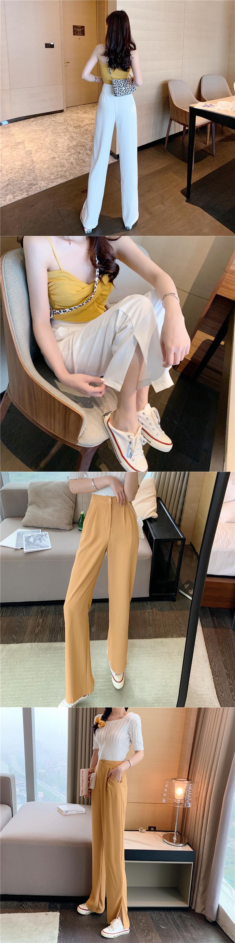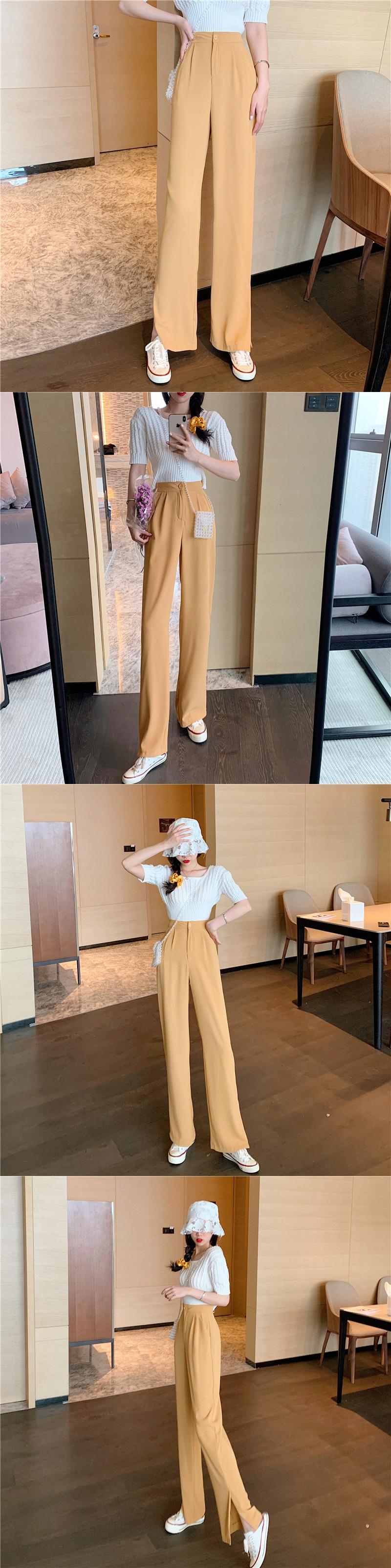 スタイルスプリットワイドレッグパンツレディースハイウエストカジュアルパンツ2020夏新作ワイルドドレープローズブラックロングパンツ 1号婦人90292345206