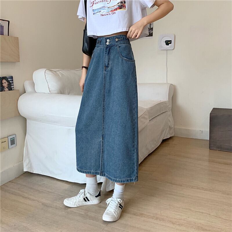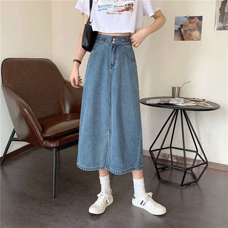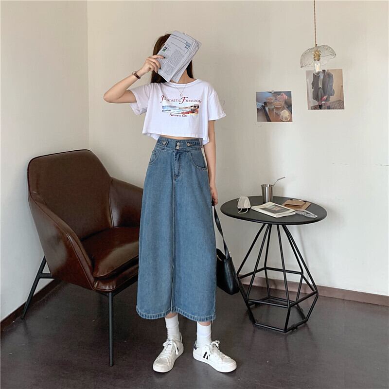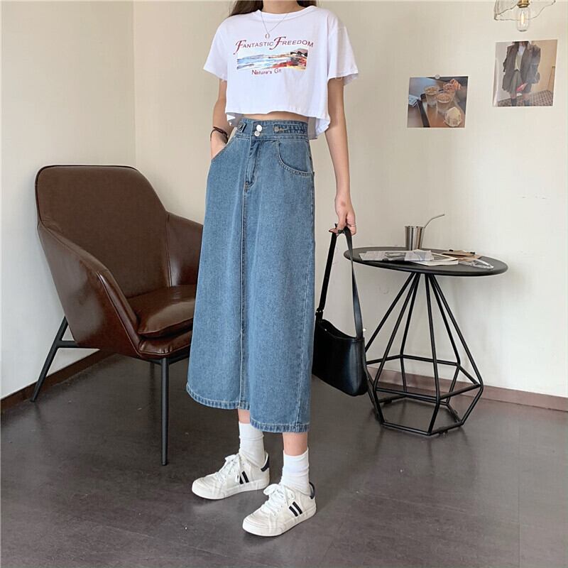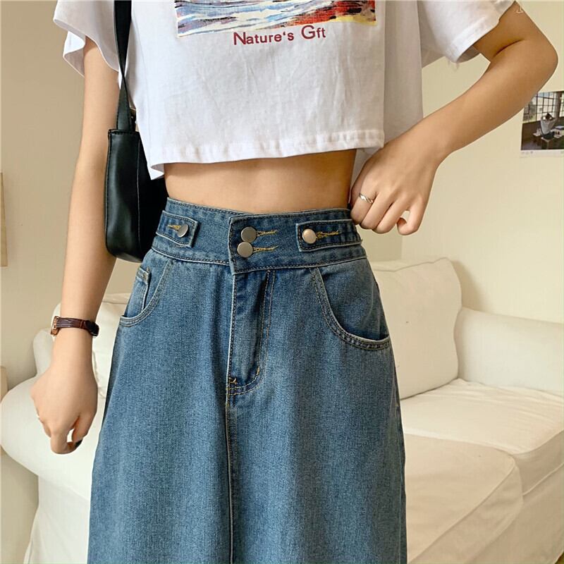 レトロスリットハイウエストスリムデニムスカート2020夏新作レディースオールマッチAラインミドル丈スカート 1号婦人14750184481