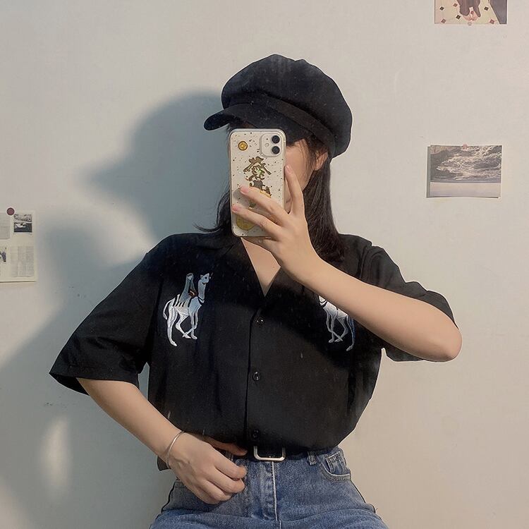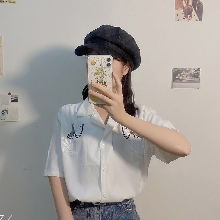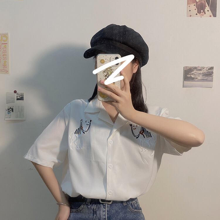 シャツ女性2020年夏の新しい香港スタイルのレトロな刺繡ショートデザインニッチオールマッチシフォンシャツトップ 1号婦人18372344526