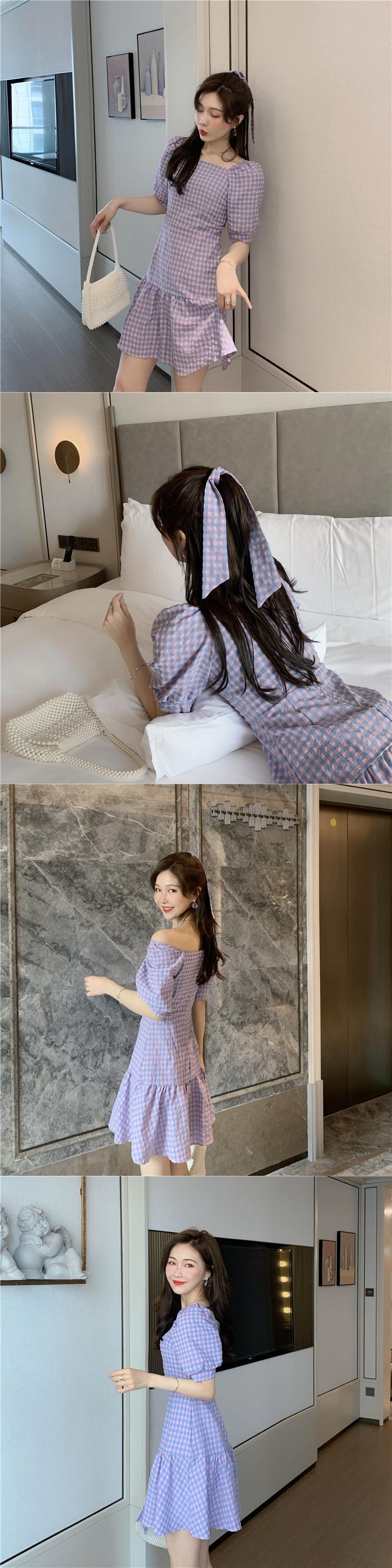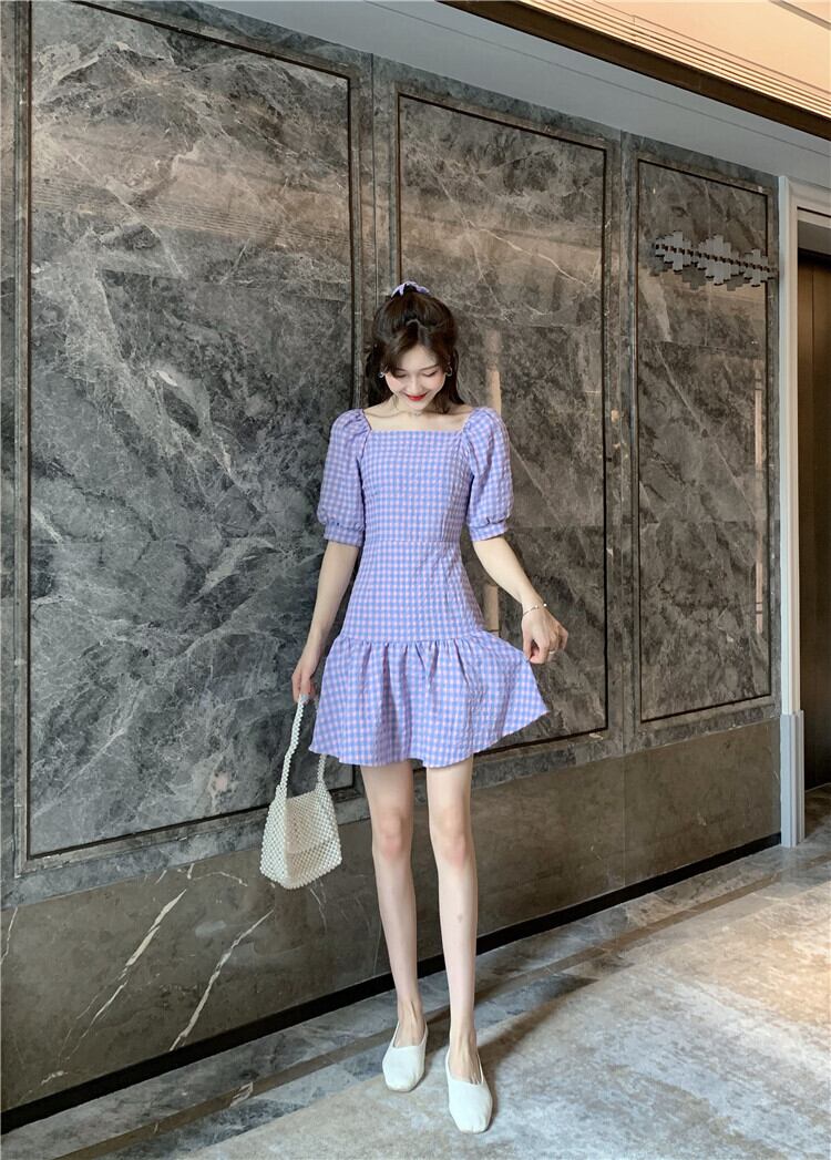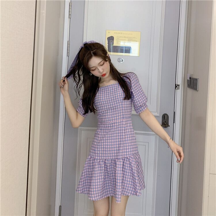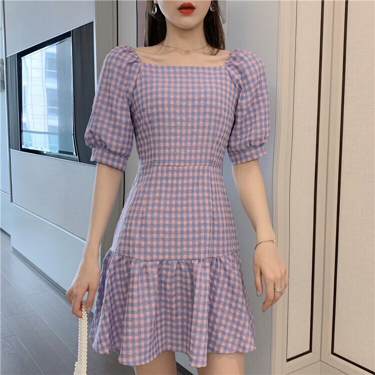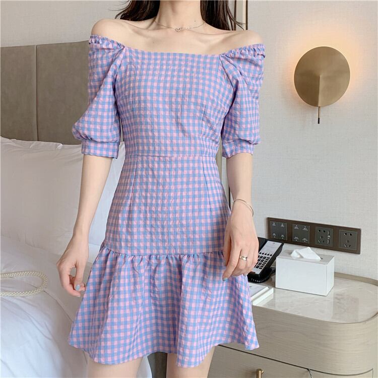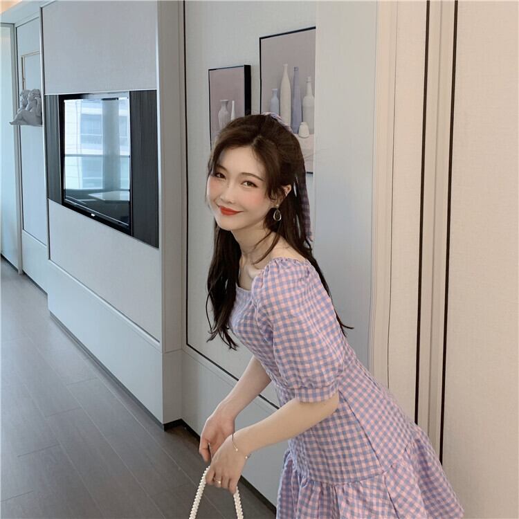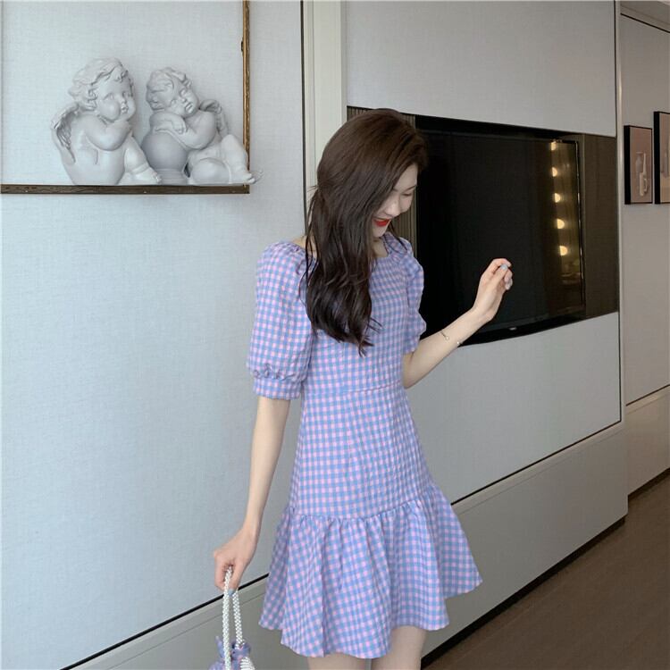 フレンチドレス2020夏新作レディースウエストウエストスリミングフリルスカート気質チェック柄Aラインスカート 1号婦人56440901477