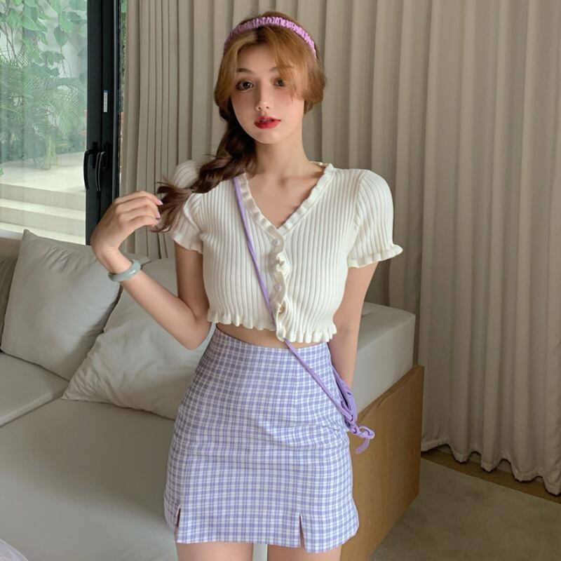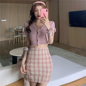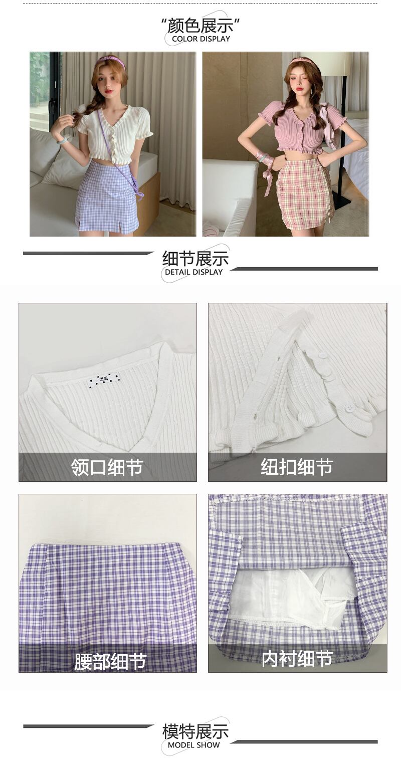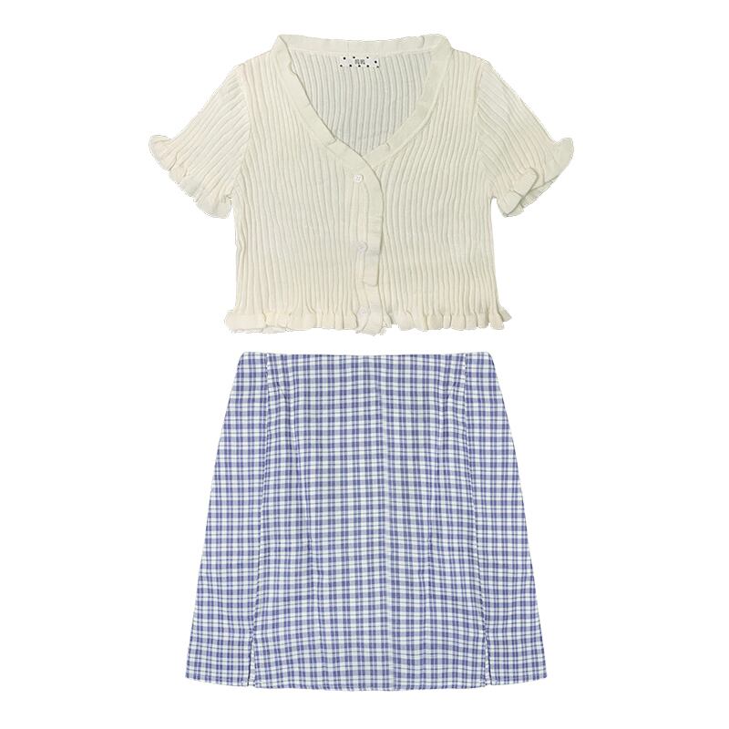 キム・ヒョナ風ツーピースチェック柄ショートスカートサマードレス2020新ネットレッドスーツ半袖トップトレンド 1号婦人65279418813