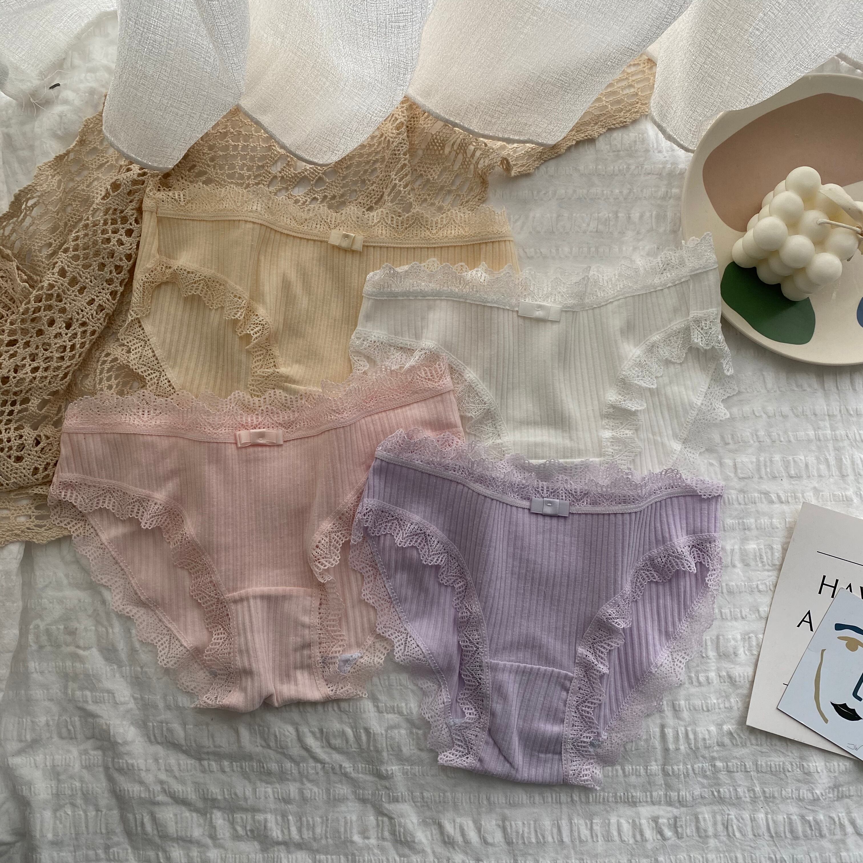 春と夏の新しいese甘いキャンディーカラー通気性の下着レースレース学生ミッドウエストヒップヒップブリーフ 1号婦人5577356558
