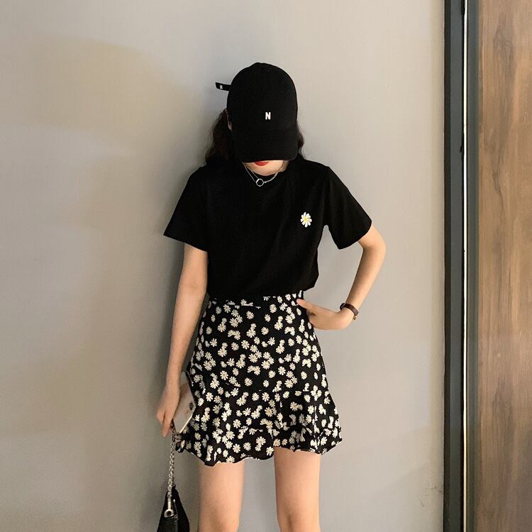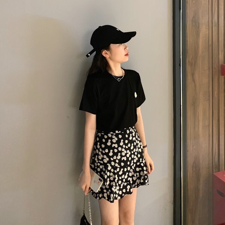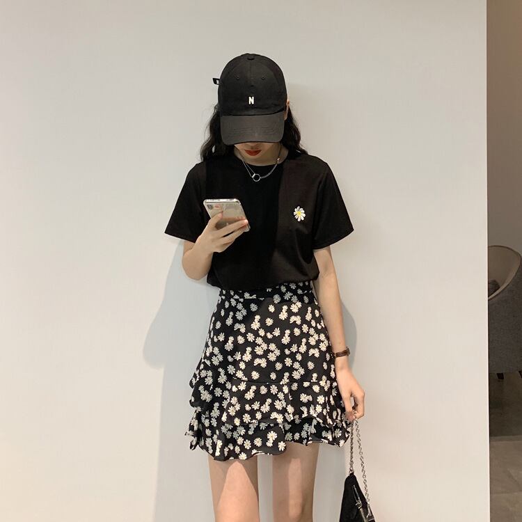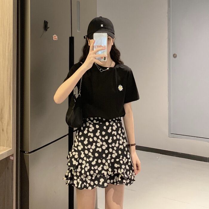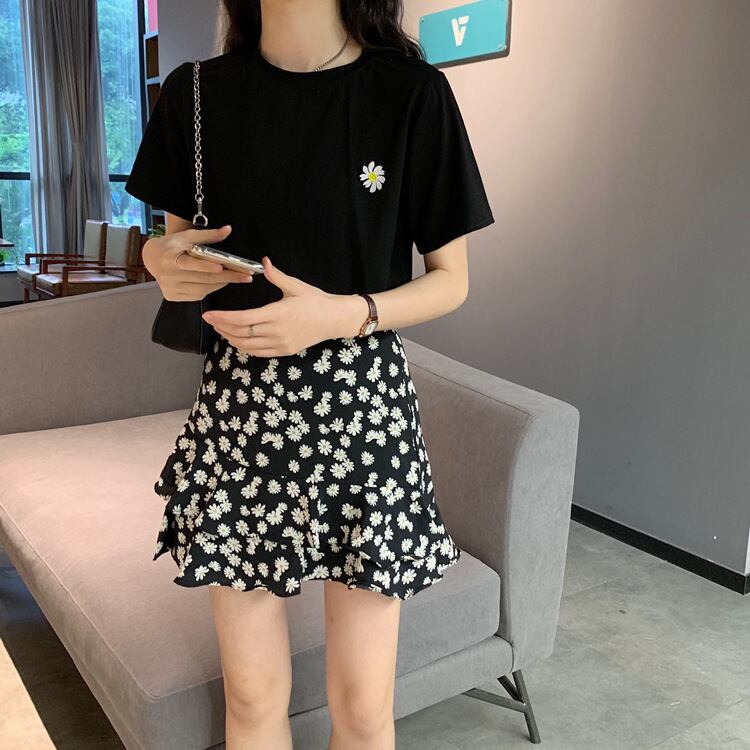 トップ女性の優しい風のスーツ2020新しい夏の小さなデイジー半袖Tシャツハイウエストショートスカート 1号婦人91723838242