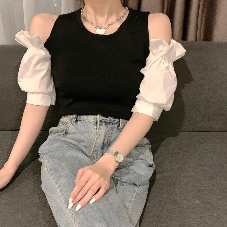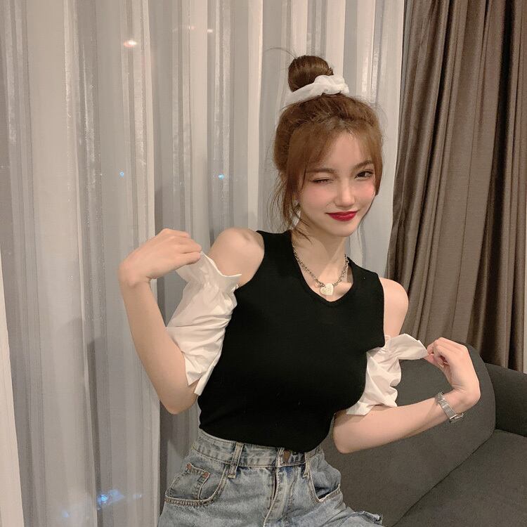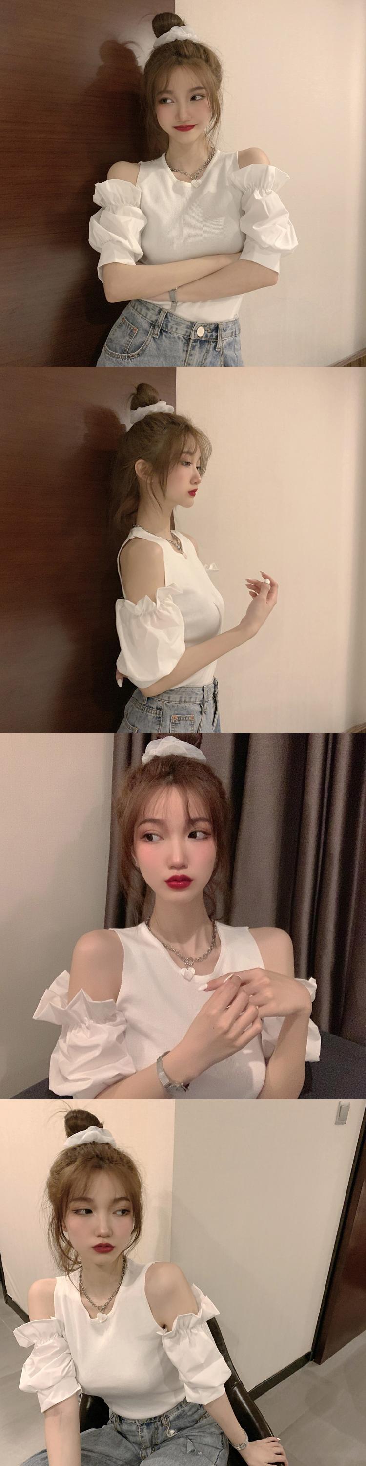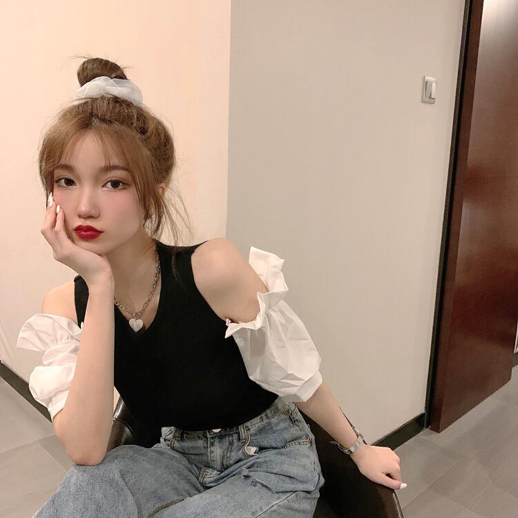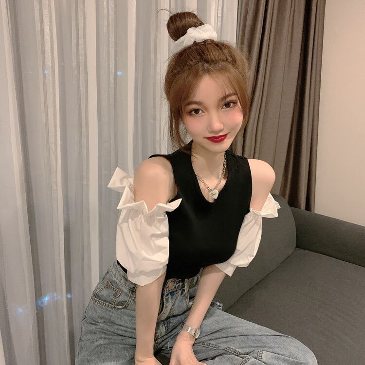半袖2020夏新しい白いパフスリーブステッチネット赤いTシャツ女性insスーパーファイヤースリムオフショルダートップ 1号婦人55576297141
