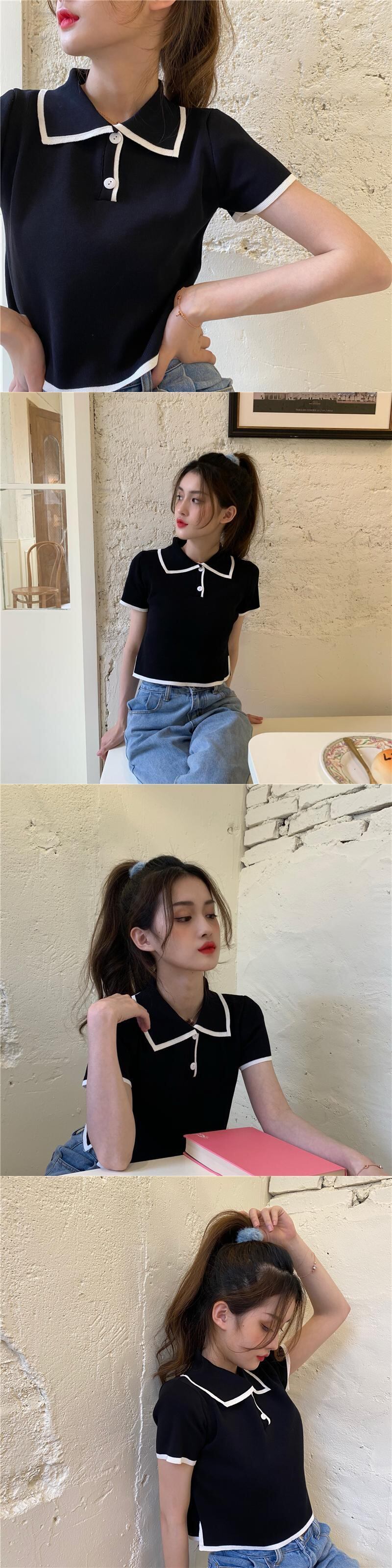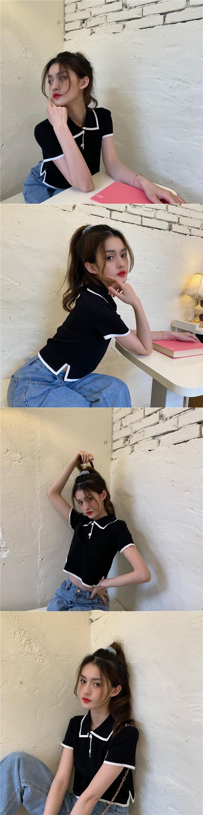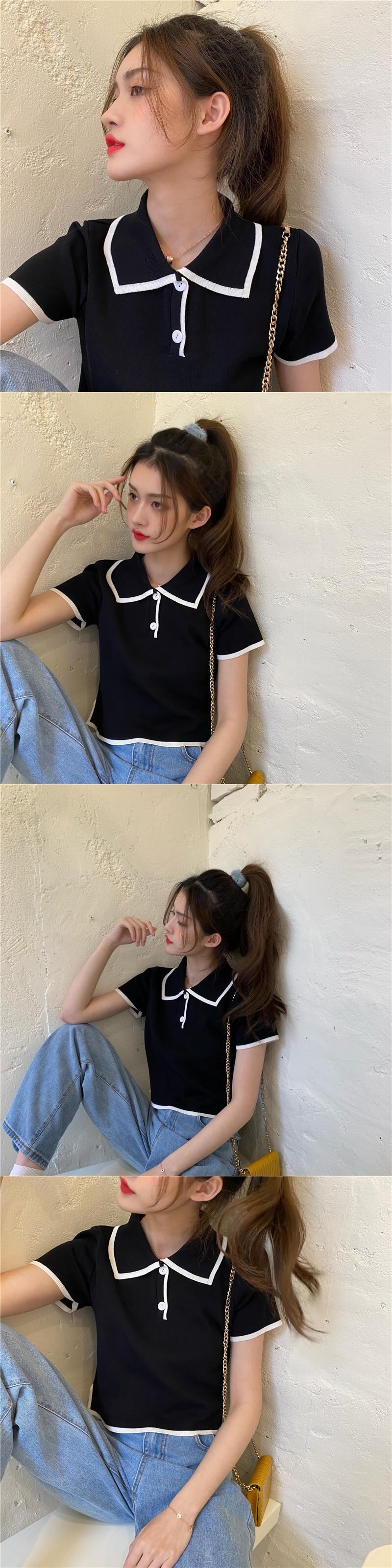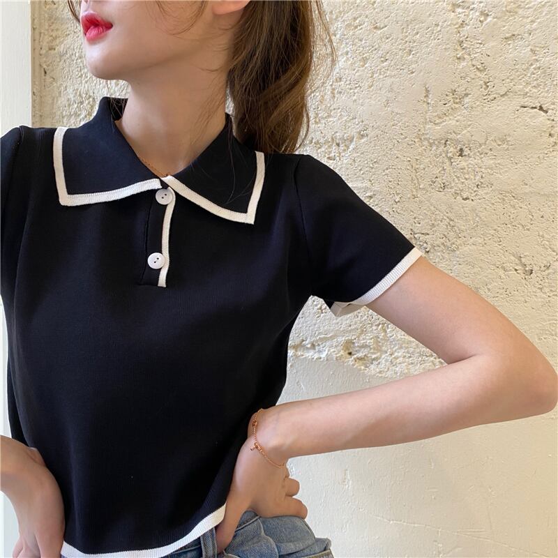 2020年夏の新作ポロカラーヒットカラーショートスリムスリム半袖Tシャツ女子学生オールマッチトップス 1号婦人80439709203