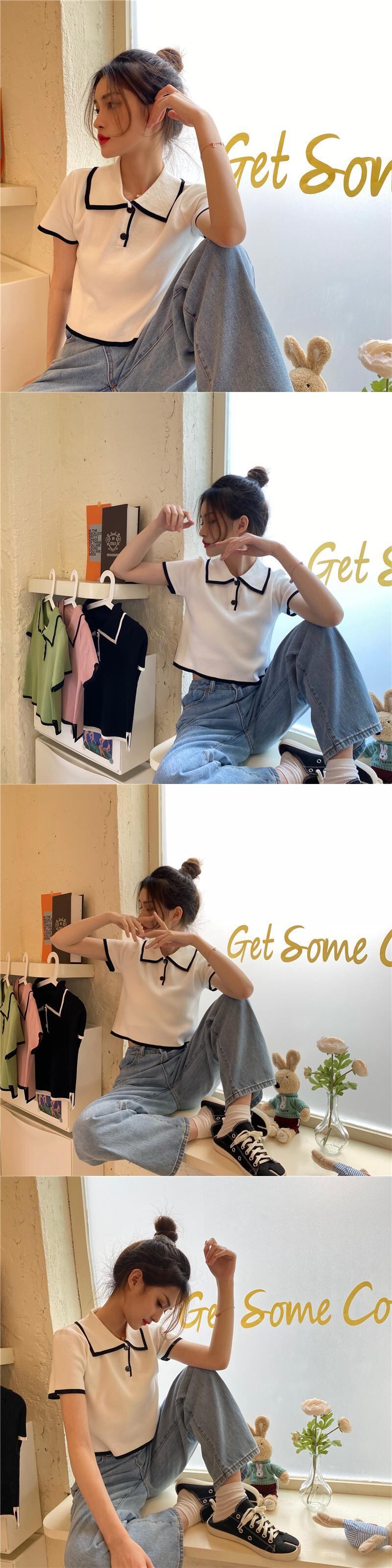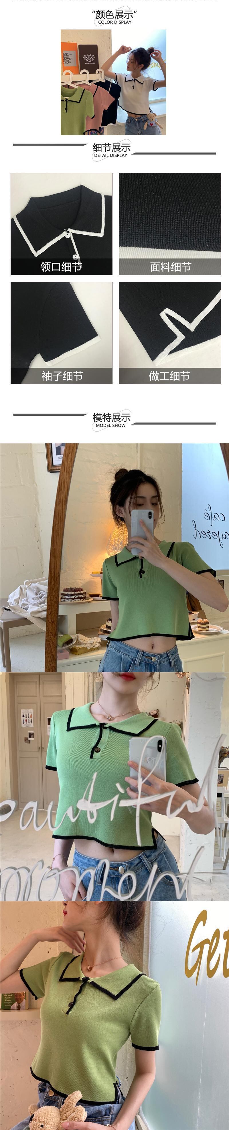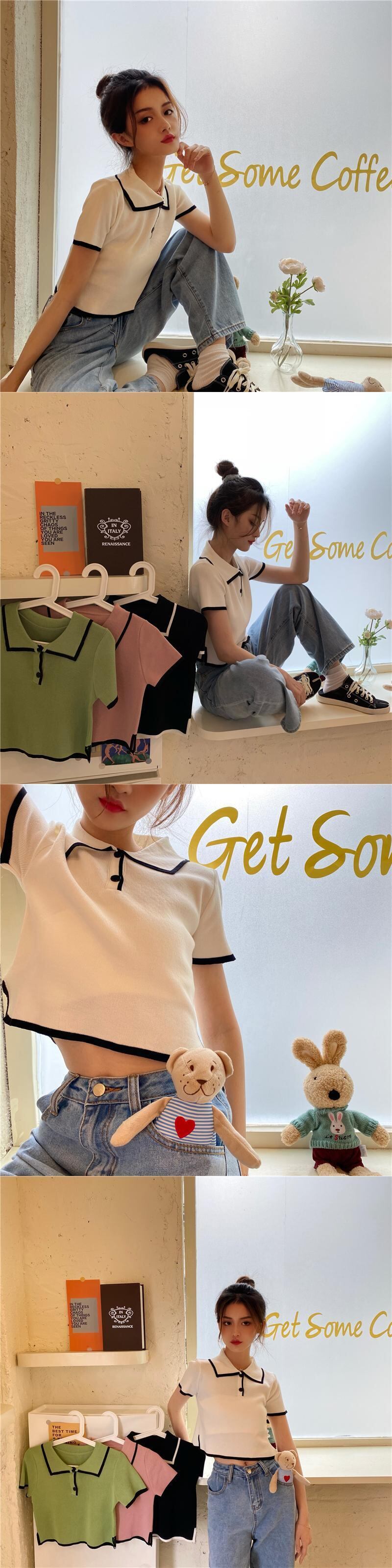 2020年夏の新作ポロカラーヒットカラーショートスリムスリム半袖Tシャツ女子学生オールマッチトップス 1号婦人80439709203