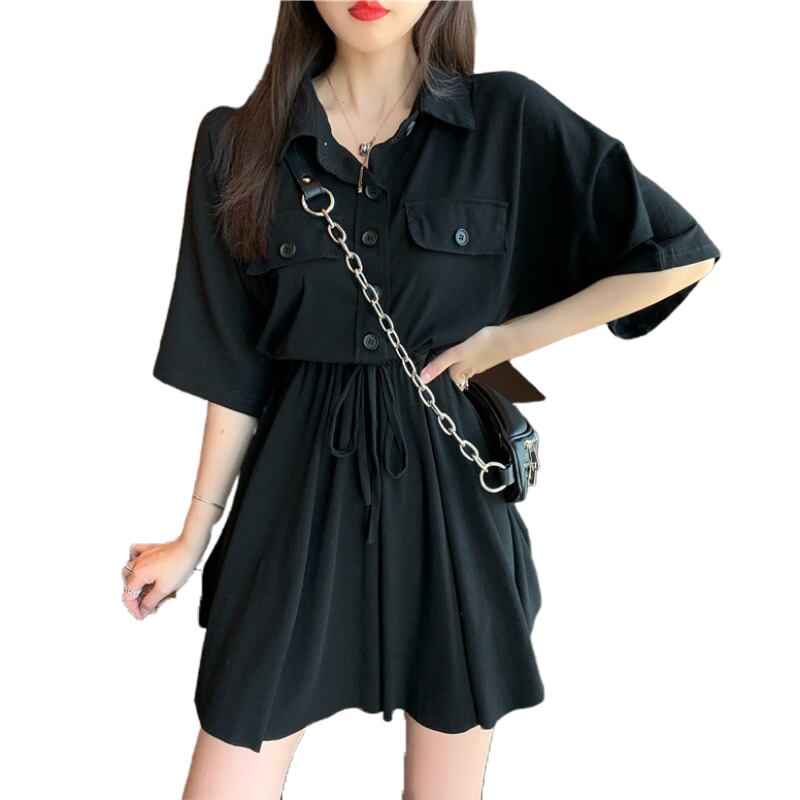 ライトマチュアスカートレディース2020夏新作ブラックハイウエストドレス気質ウエストベルトAラインスカート 1号婦人85494397154