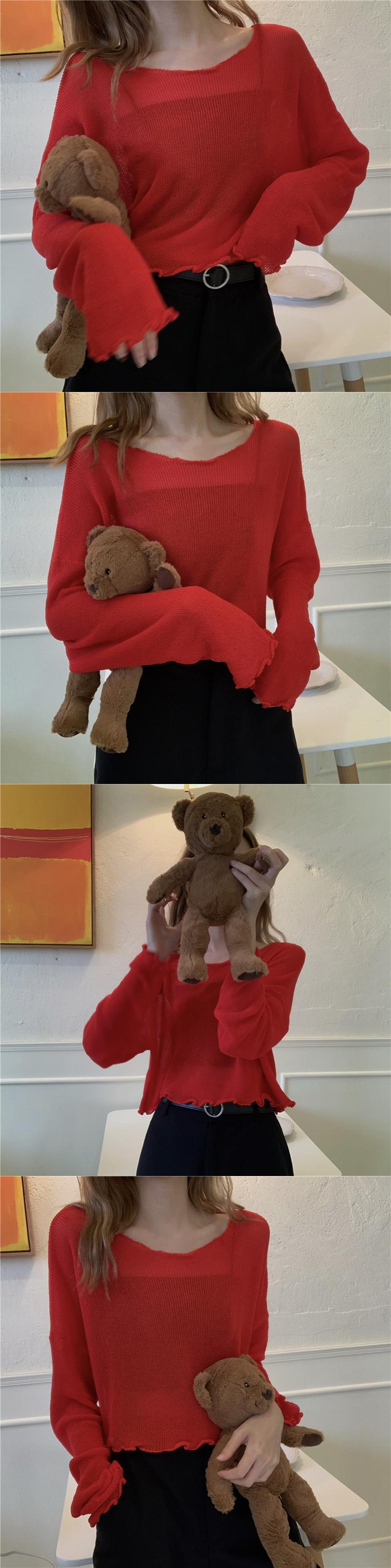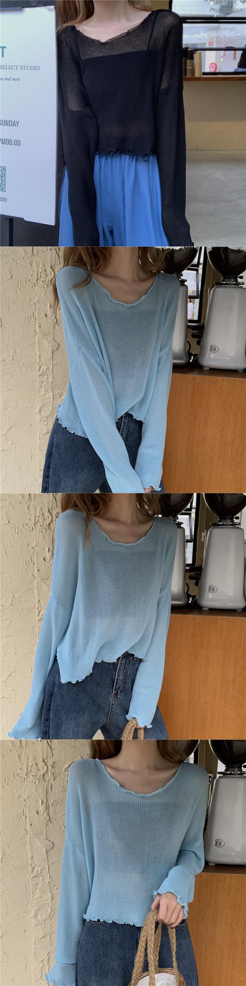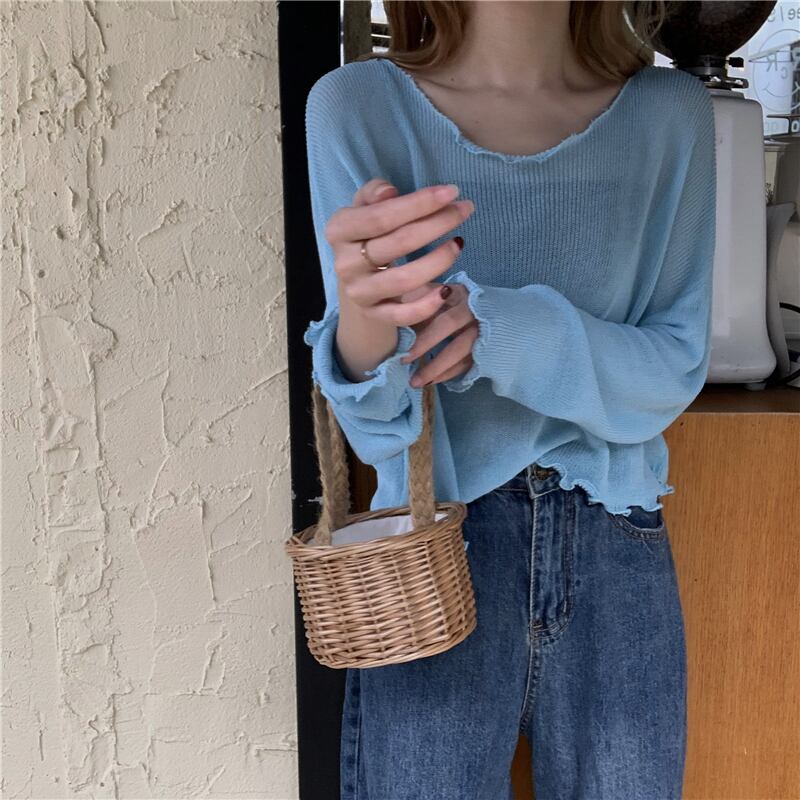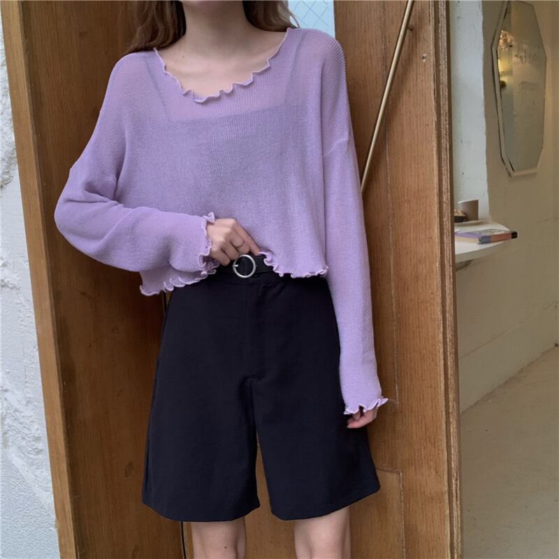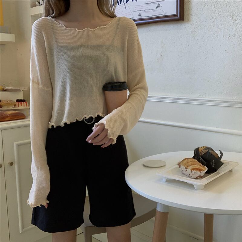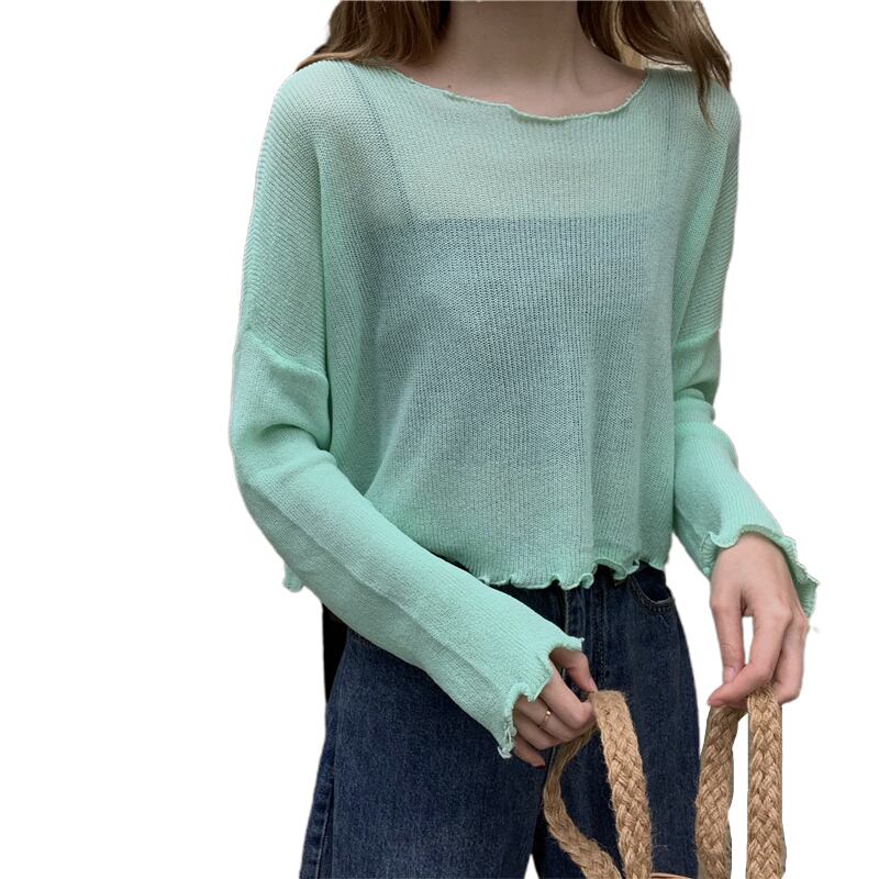 2020年夏の新しいワイルドルーズ薄い日焼け止めショートニットセーターエアコンシャツ長袖Tシャツトップ女性イン 1号婦人72914969768