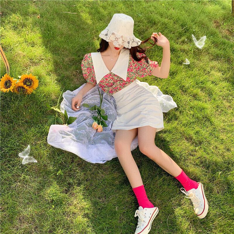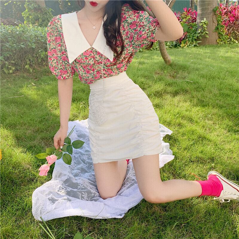 気質の女神ファン服スーツ2020新しいレトロフローラル半袖シャツ+ヒップスカートハーフレングススカート 1号婦人72034978602