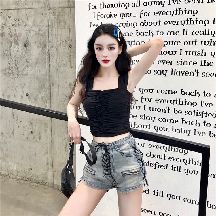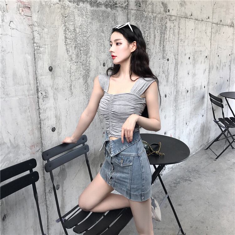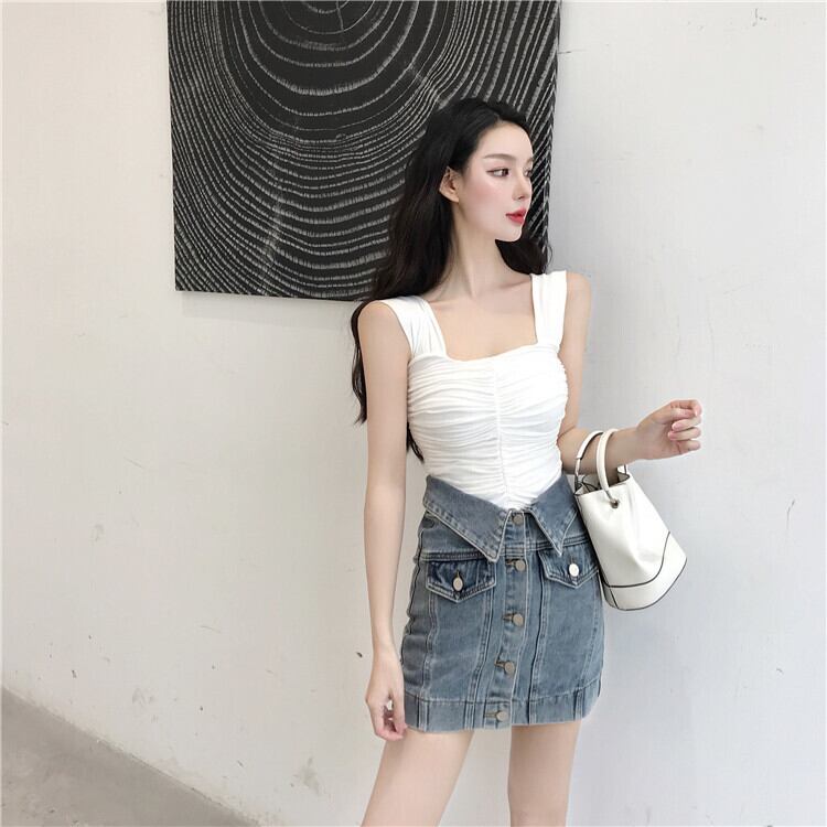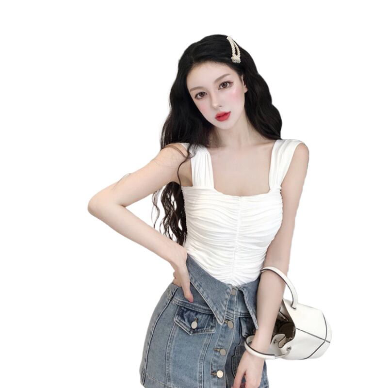 女性の夏の新しいシックなバージョンの折り目は、薄く、オールマッチのキャミソール、白いスリムでセクシーなトップ、アウターウェアとインナーウェアでした 1号婦人80885822435