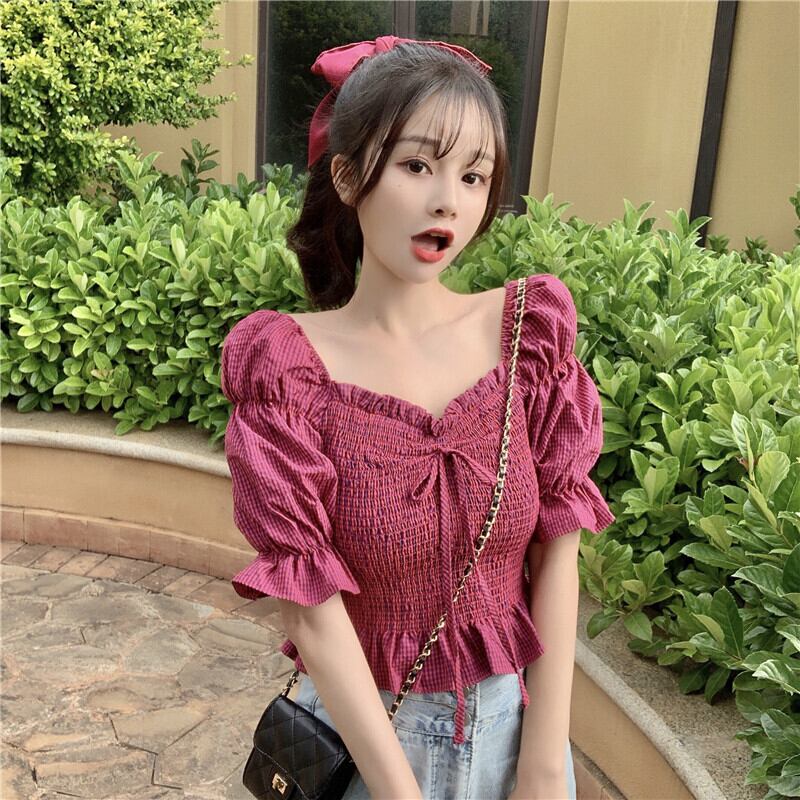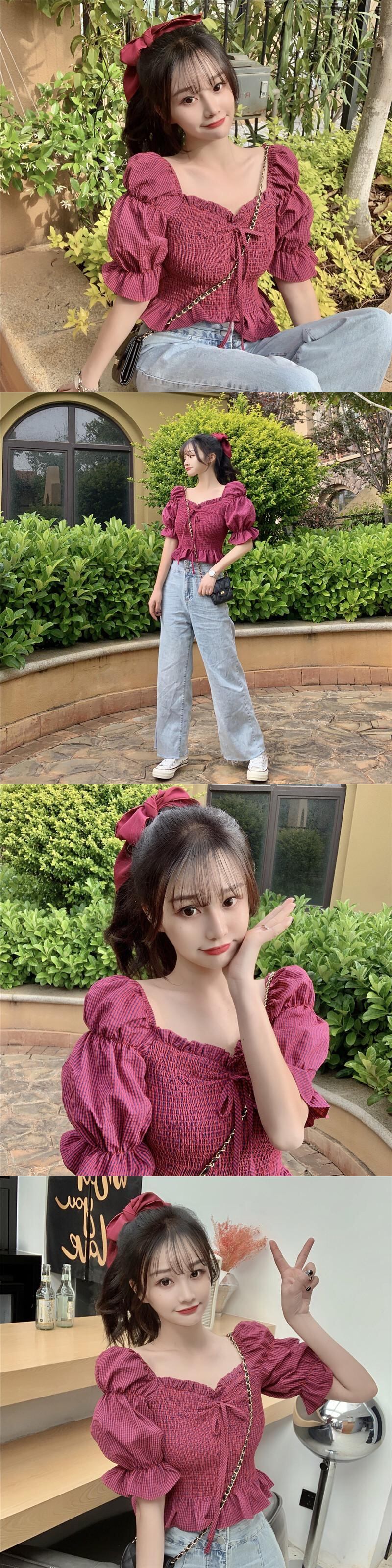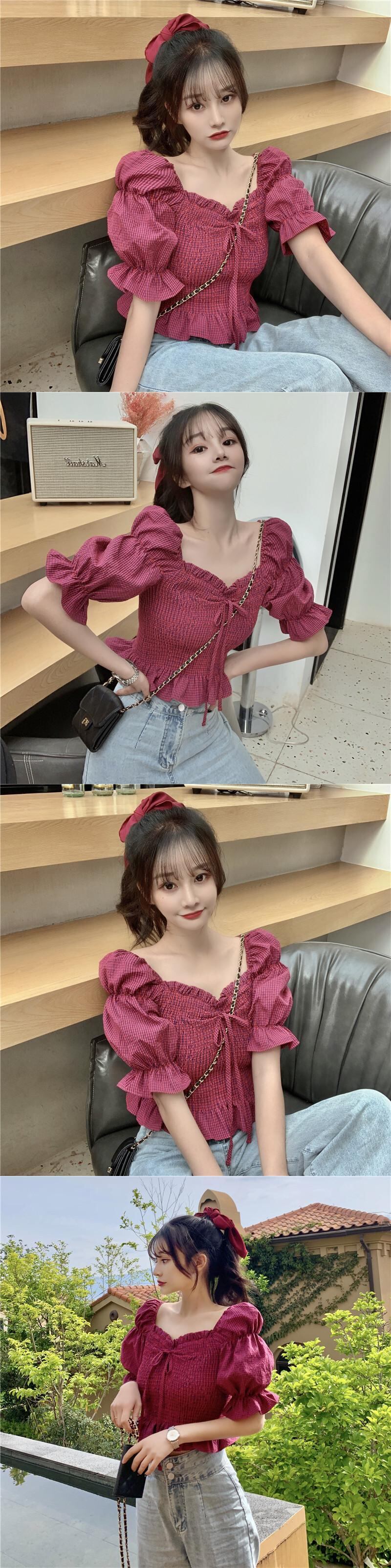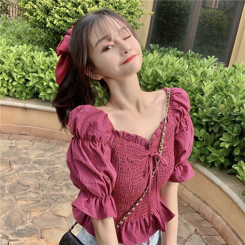 センスニッチコレクションウエストスリミングライトマチュアシャツニューサマー2020レトロチェック柄優しい風ブラウス女性 1号婦人25984244024