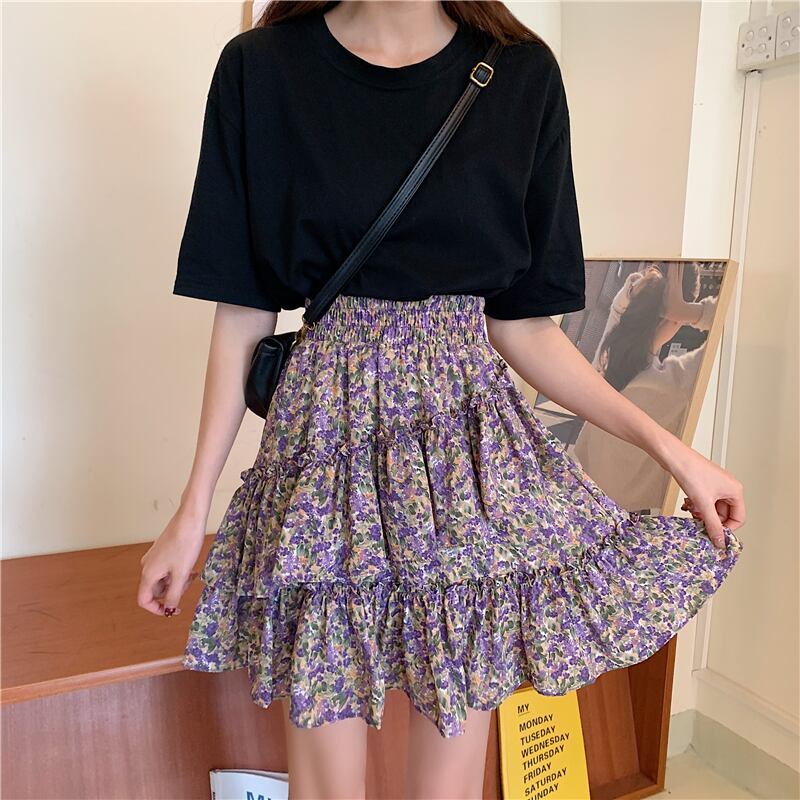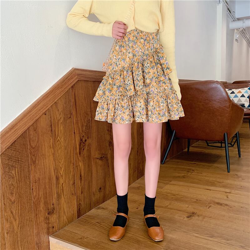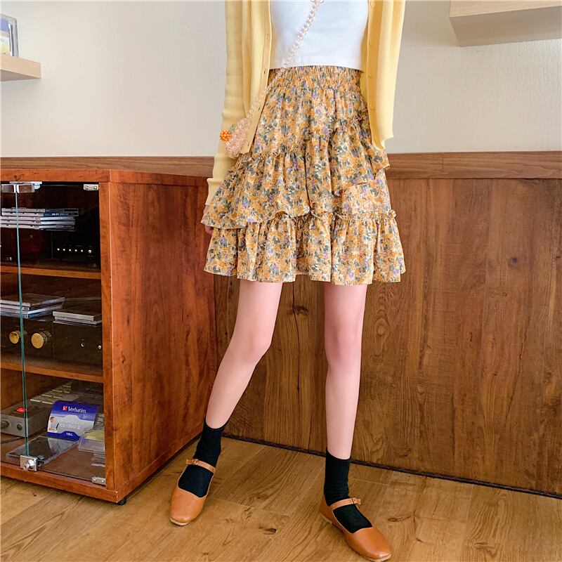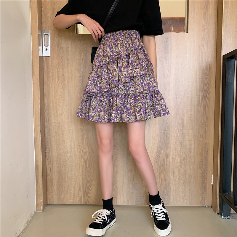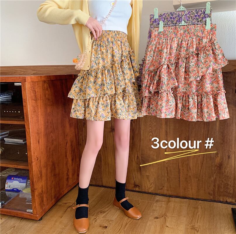 気質スカート女性2020年夏新作イレギュラーケーキスカートハイウエストAラインシフォンフローラルショートスカート 1号婦人57114873044