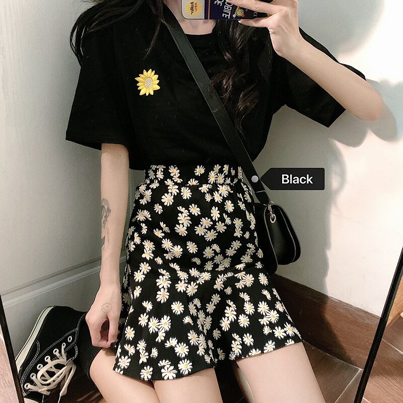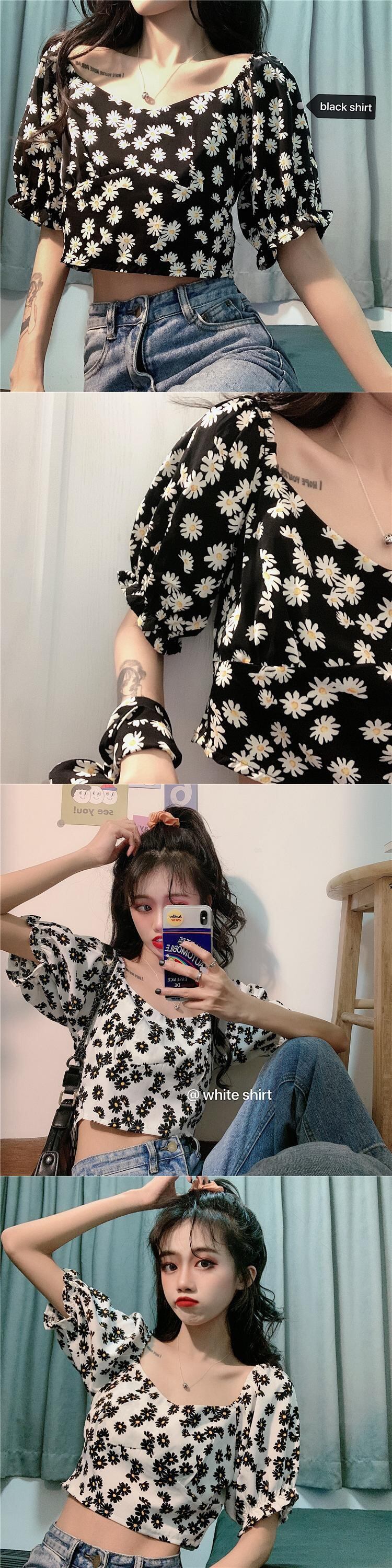 ショートフローラルブラウスレディース2020ニューサマーインスーパーファイアリトルデイジーヒョナスタイルVネックパフスリーブシャツ 1号婦人33751046635
