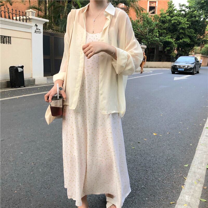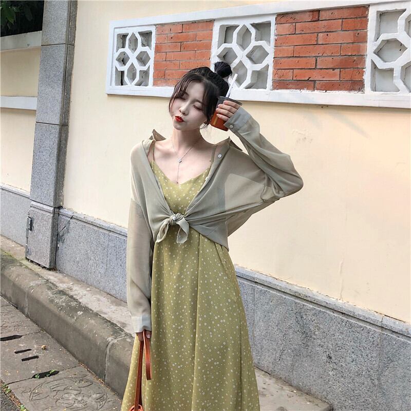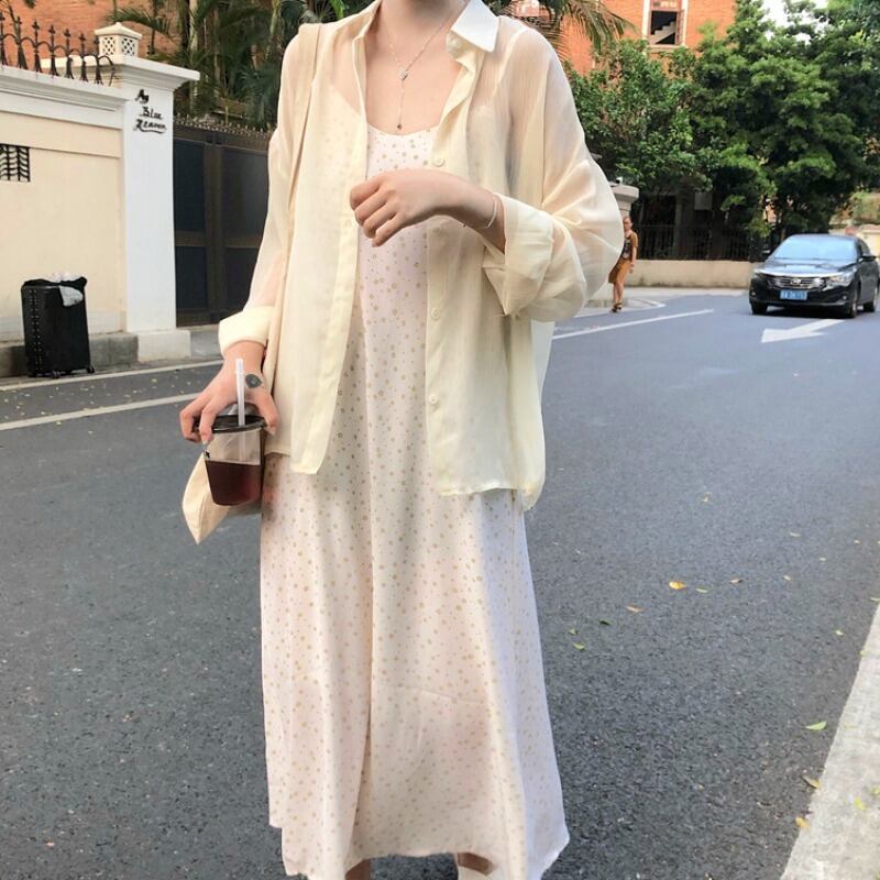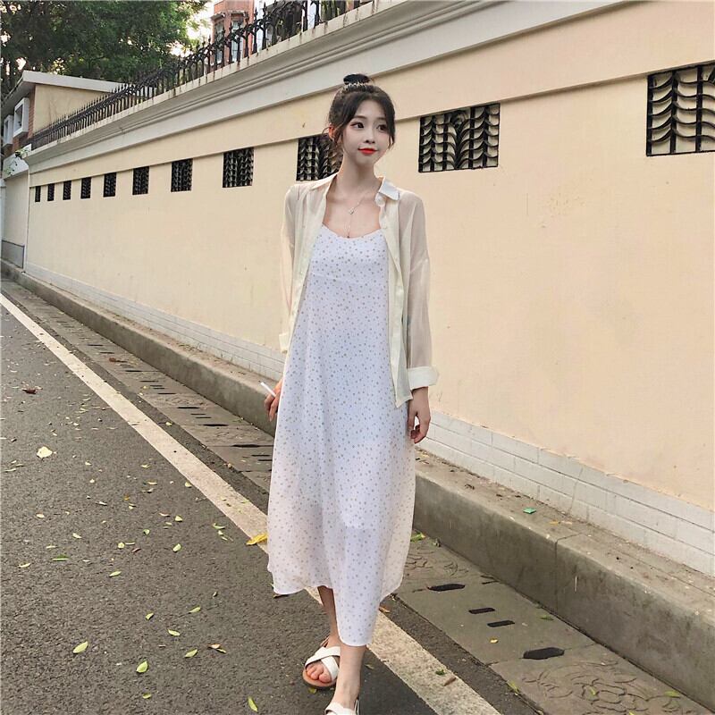 セット2020新しい女性のスタイルのスリング花柄ドレス長袖日焼け止めシャツツーピースウエスタンスタイル 1号婦人5196401038