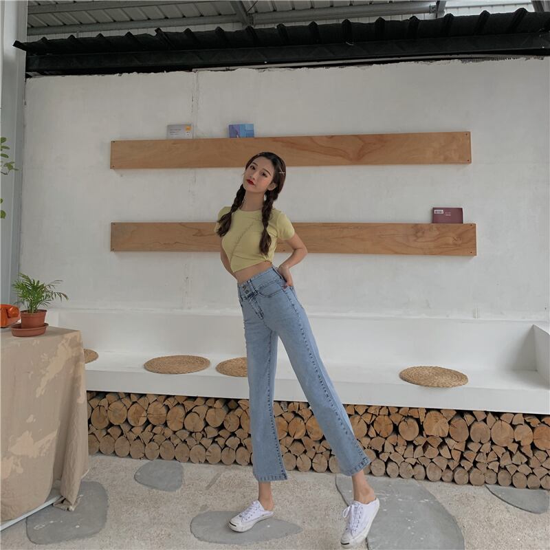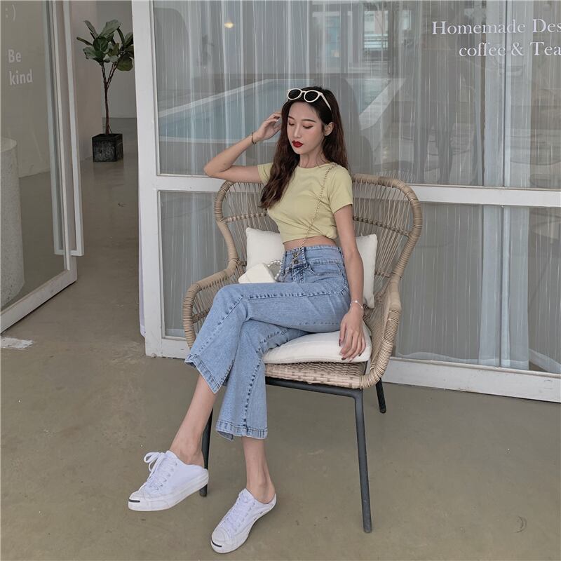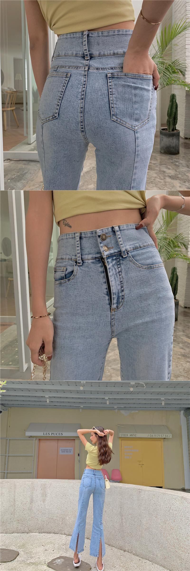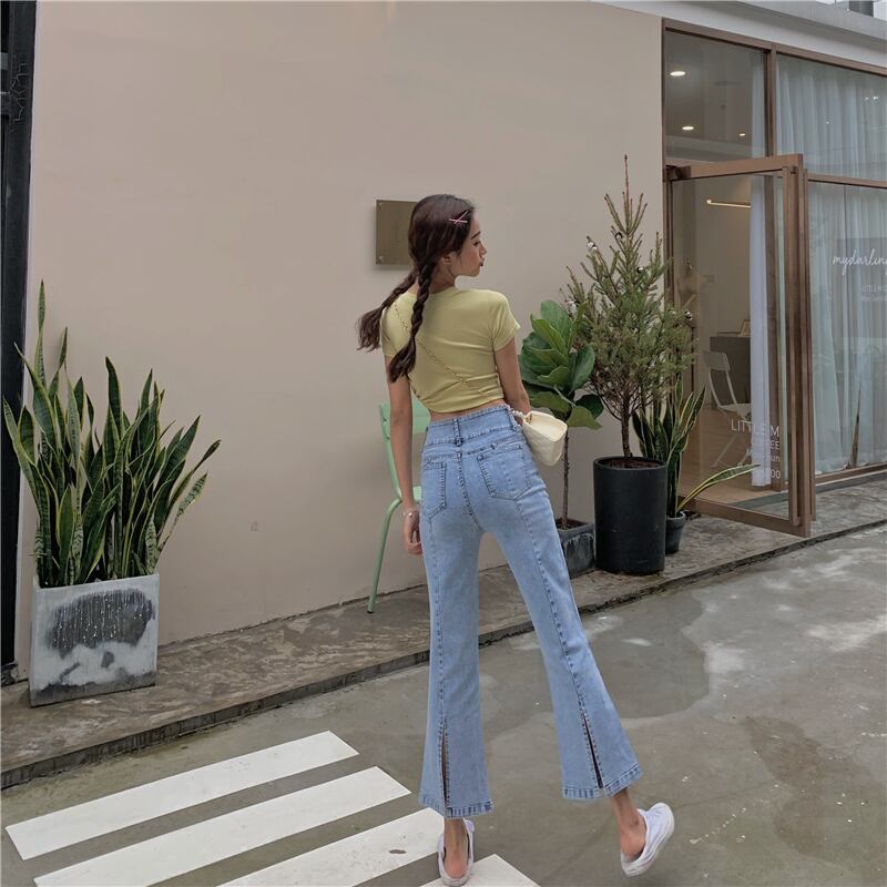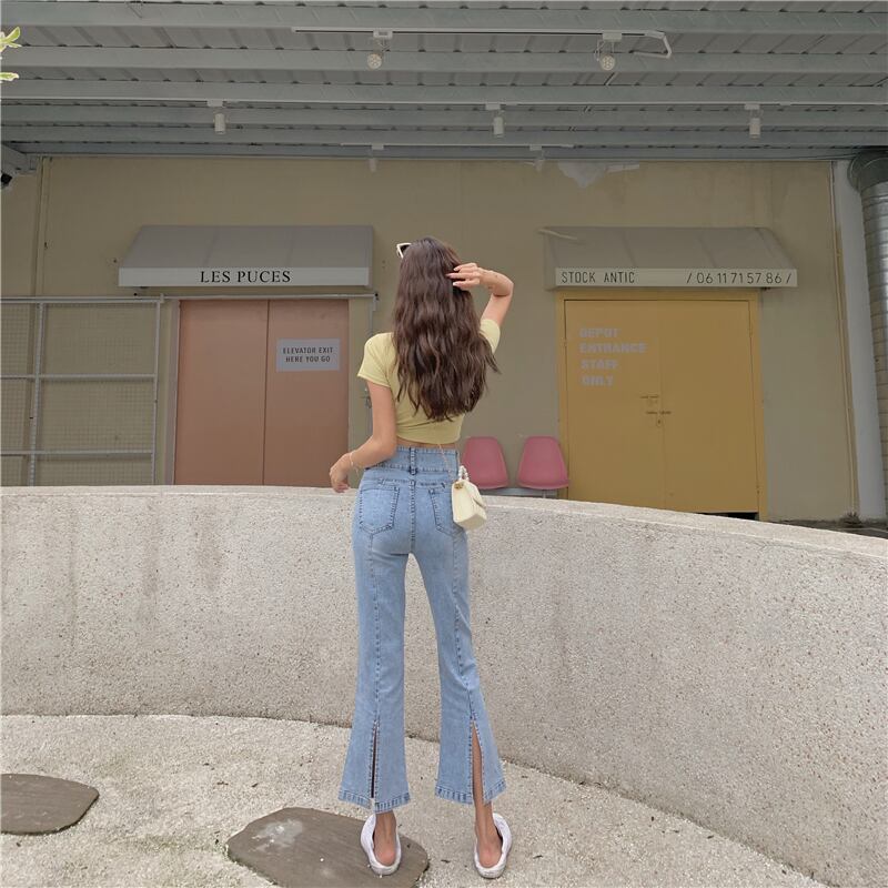 2020年夏の新しいレトロな香港風味のシックなデザインセンスストレッチスリットマイクロパンツ9ポイントジーンズレディースパンツ 1号婦人31726547925