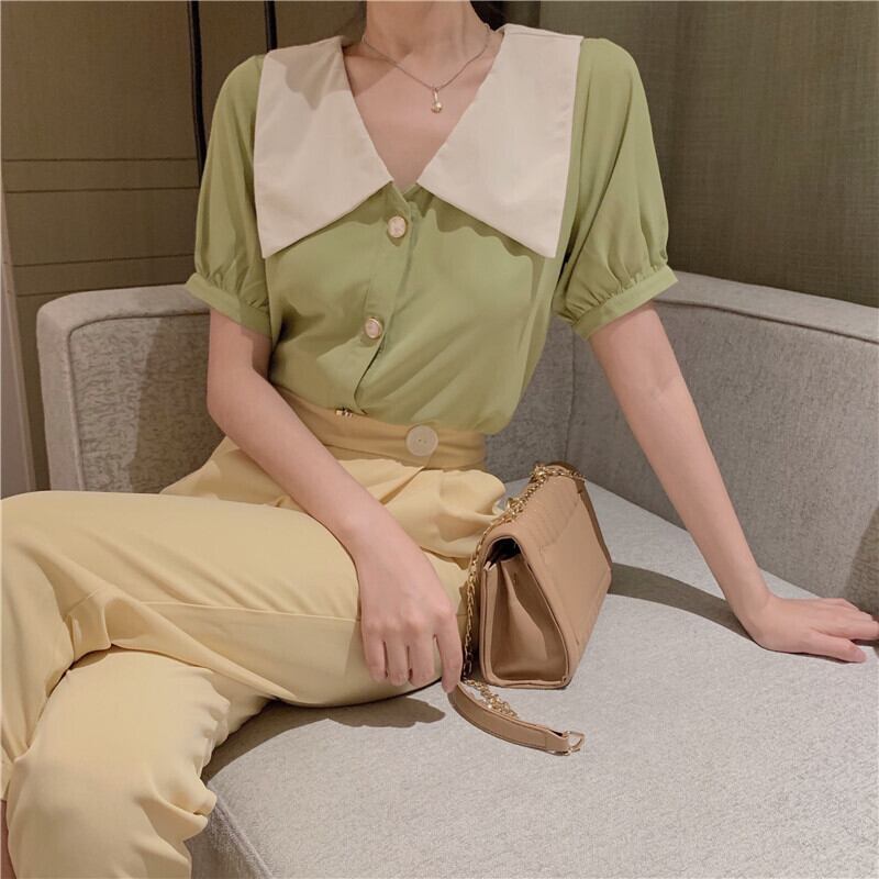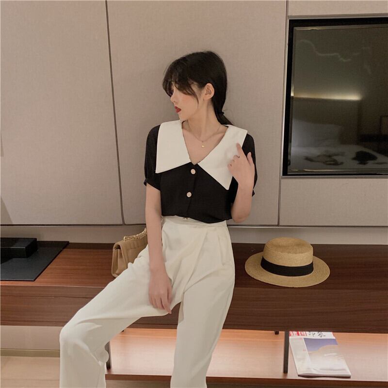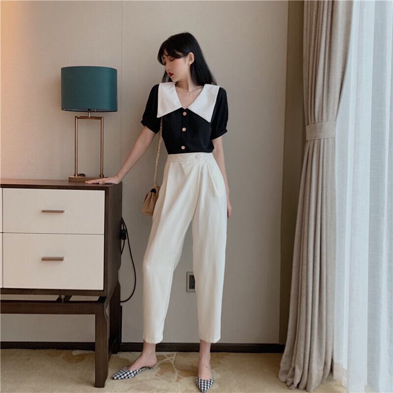 フランスのレトロなスーツ2020新しい女性の夏の洋風ストレート9ポイントカジュアルパンツシフォンシャツトップス 1号婦人25326449693