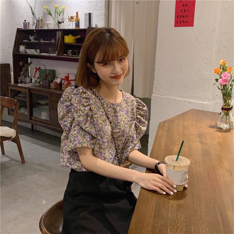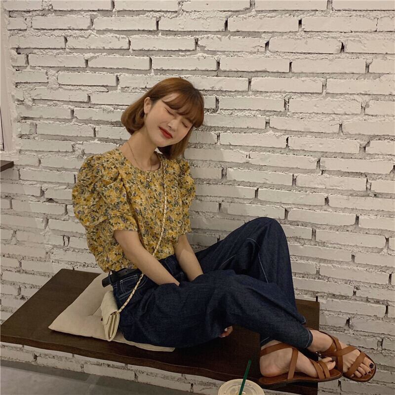 レディーススモールシャツニューウエスタンスタイル2020夏ルーズワイルドフローラル半袖シフォンシャツカバートップ 1号婦人40881819913