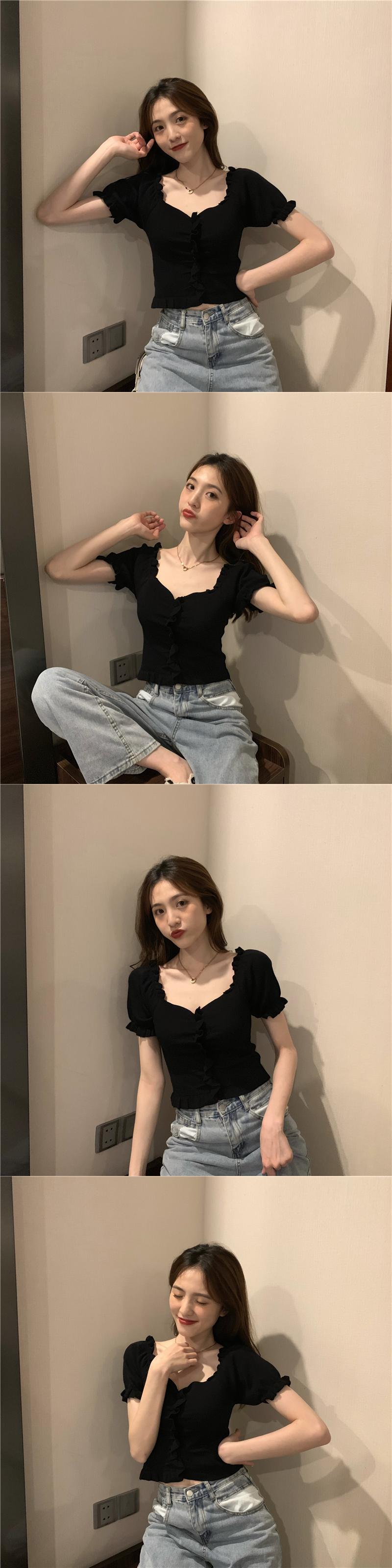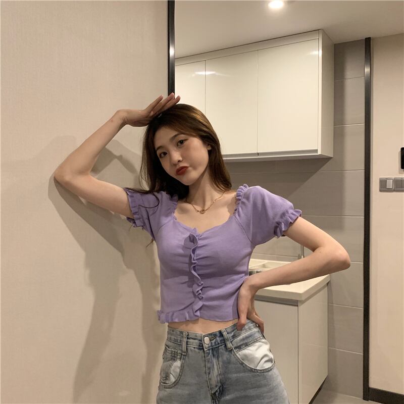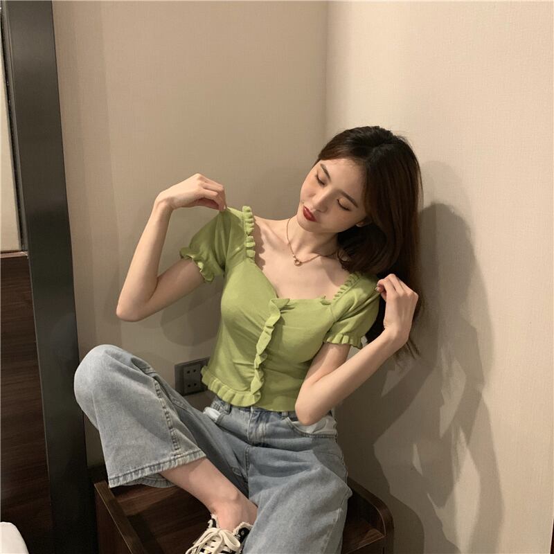 2020年夏の新しい香港フレーバーレトロウッド耳気質半袖Tシャツスリムショートクロップドニットトップ女性 1号婦人67740080103