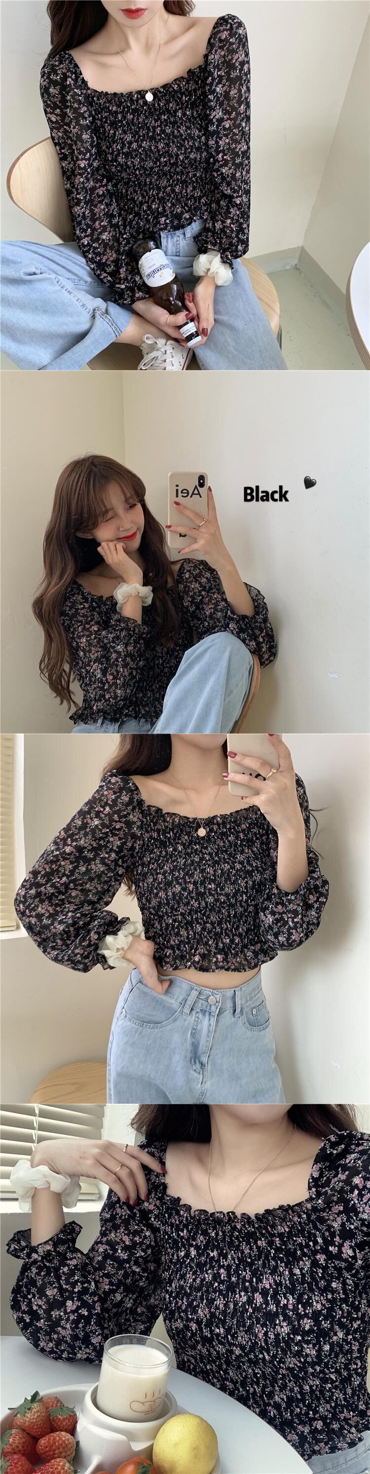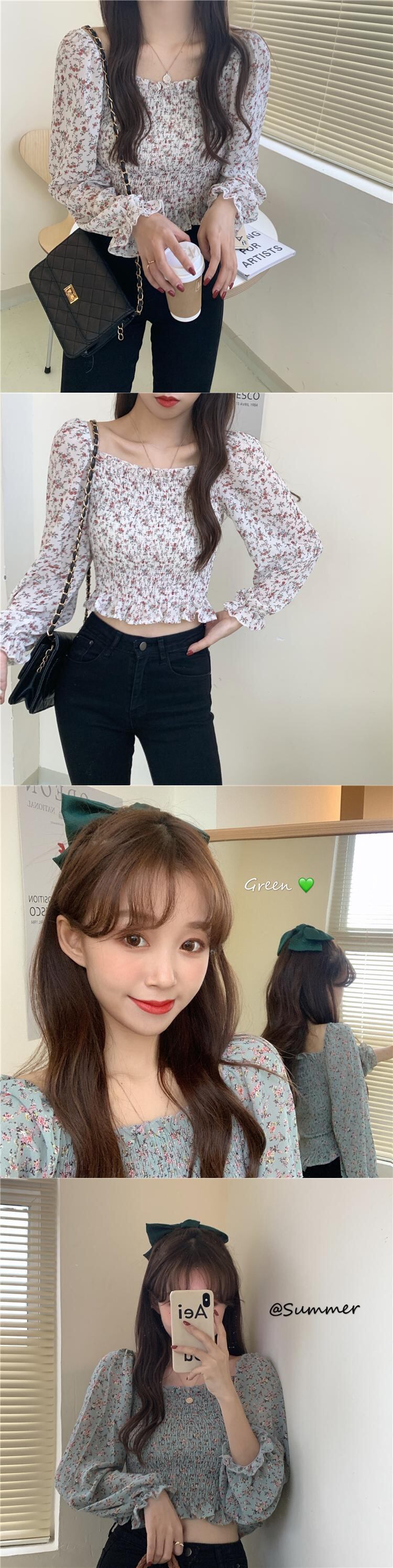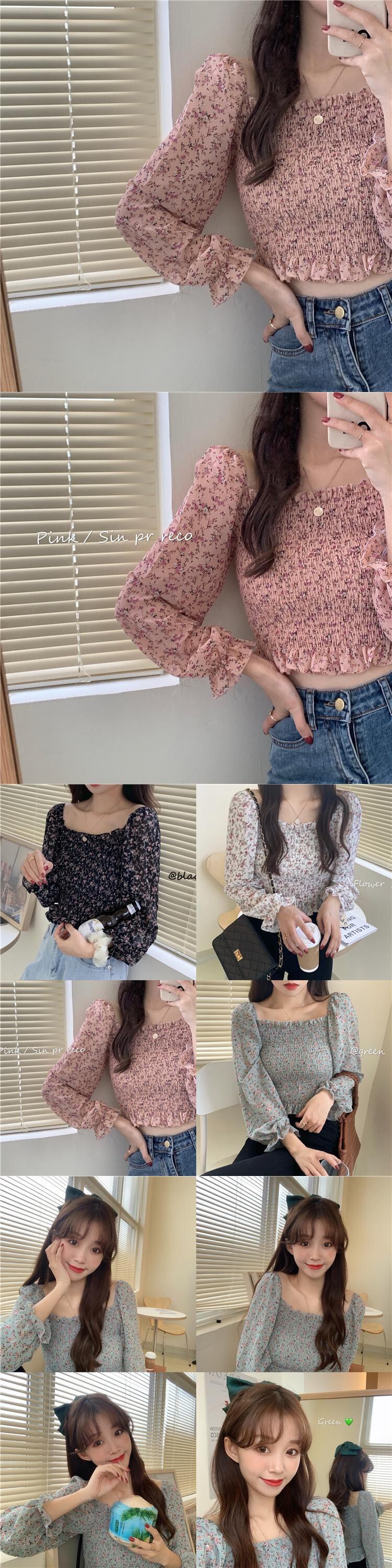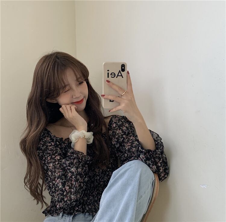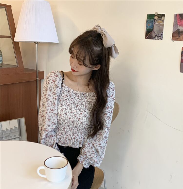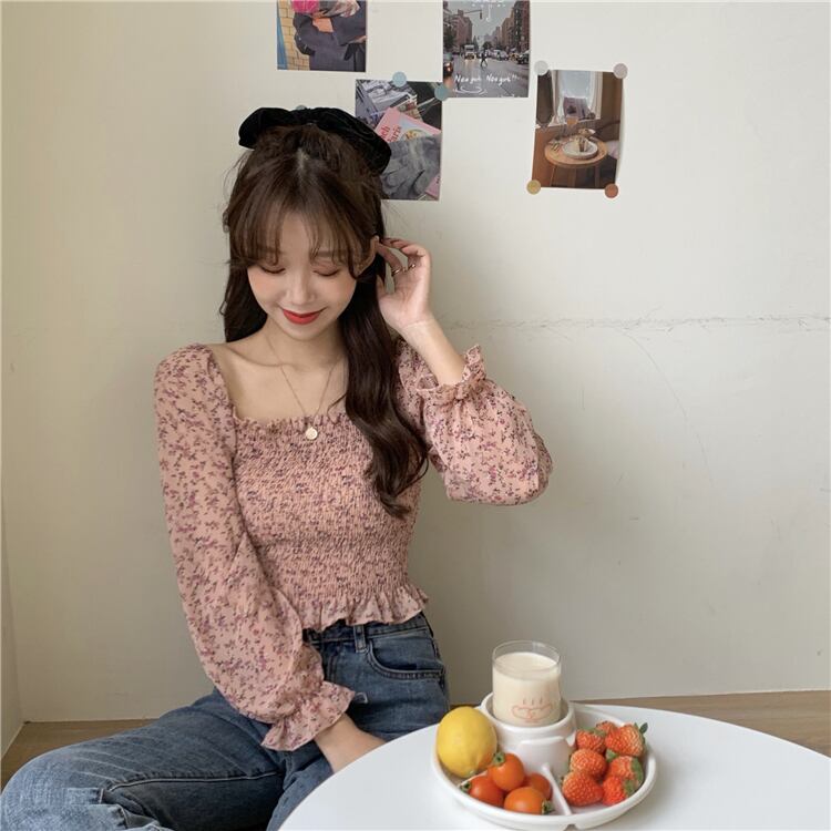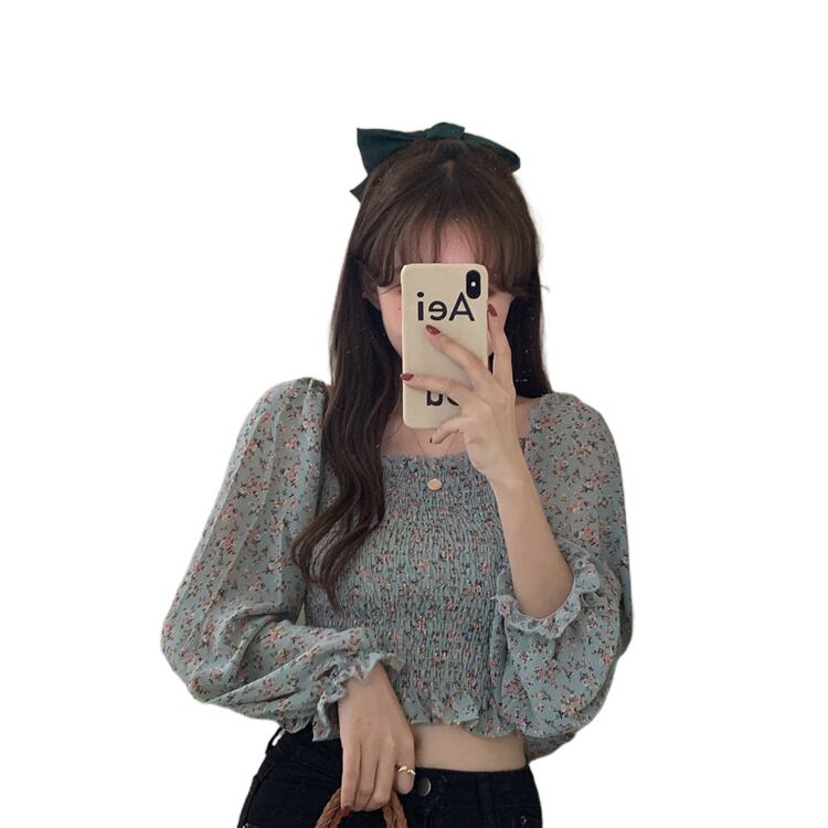 レディースボトミングシャツ2020eignスタイル春スタイルスーパーフェアリースイートフローラルショートトップ、長袖シフォンシャツトレンド 1号婦人14880947948