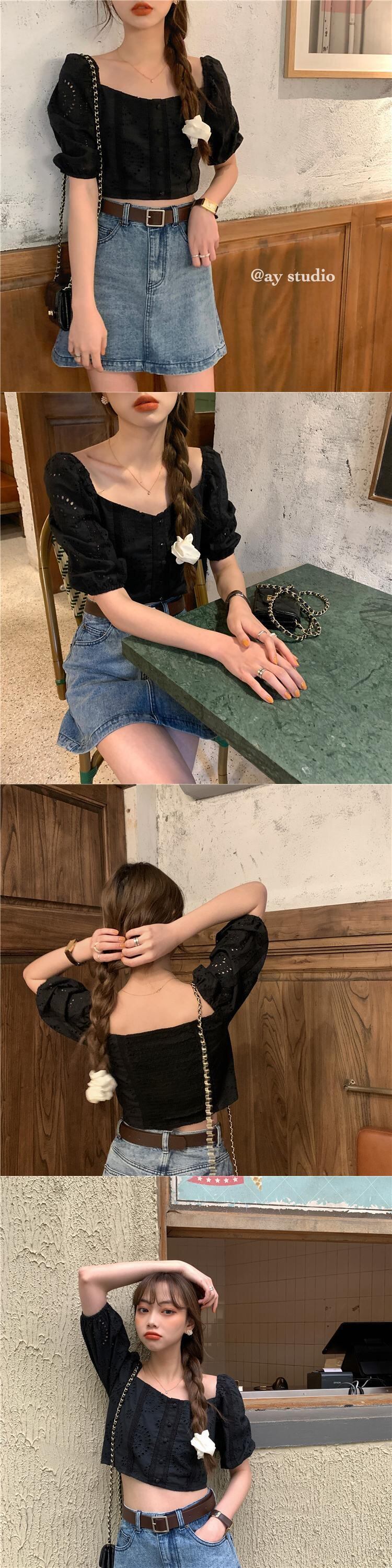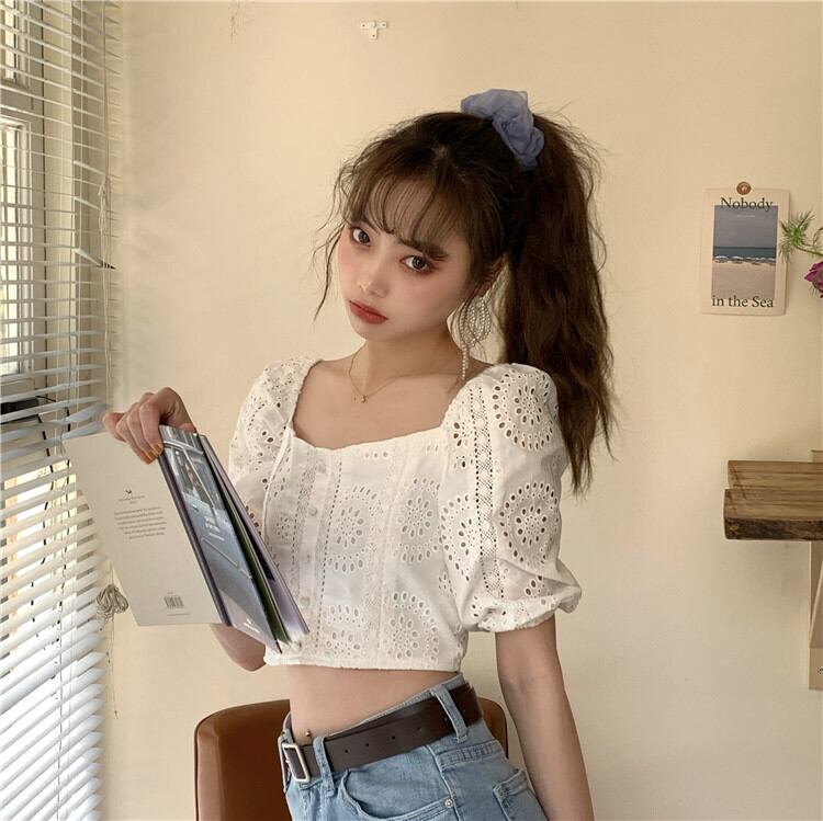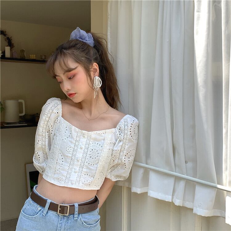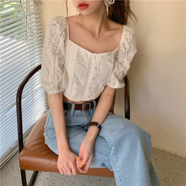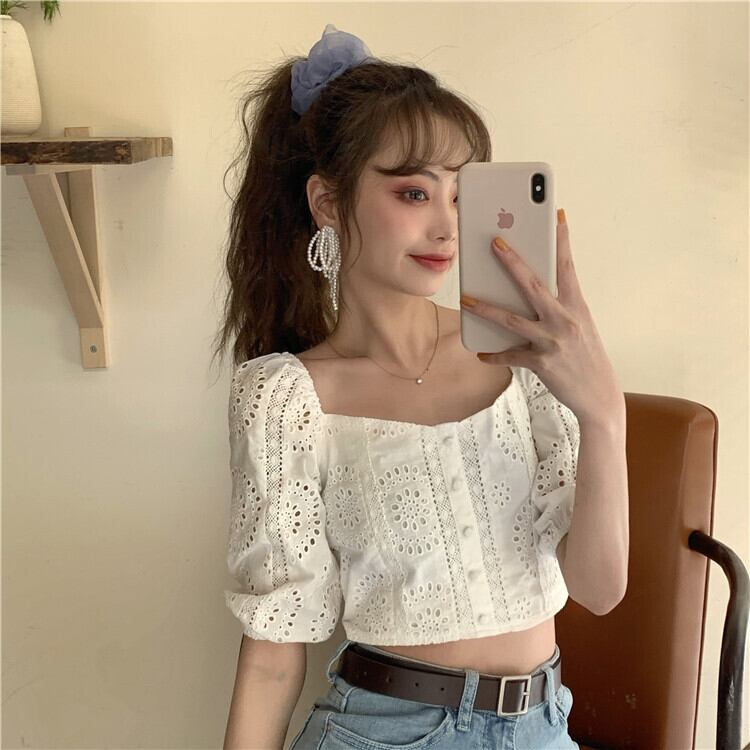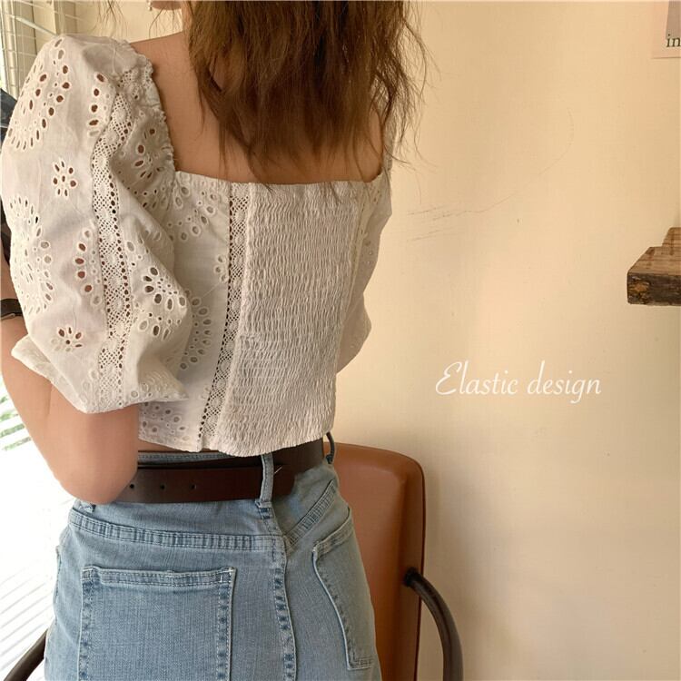 スクエアネックパフスリーブトップレディースサマードレス2020新しいショートレースホワイトシャツデザインニッチスモールシャツ 1号婦人82793403745