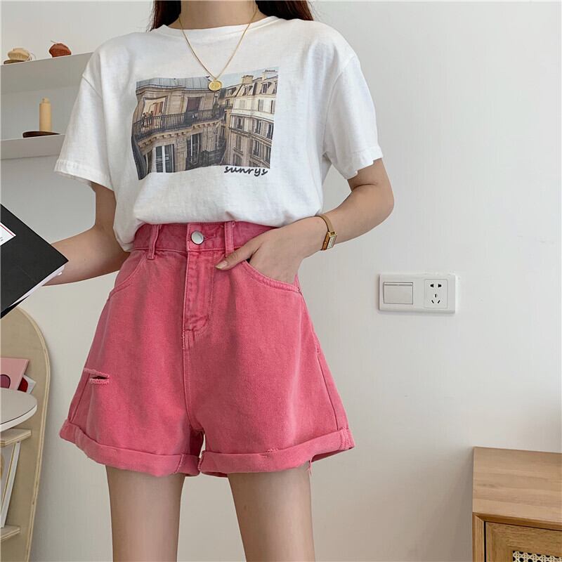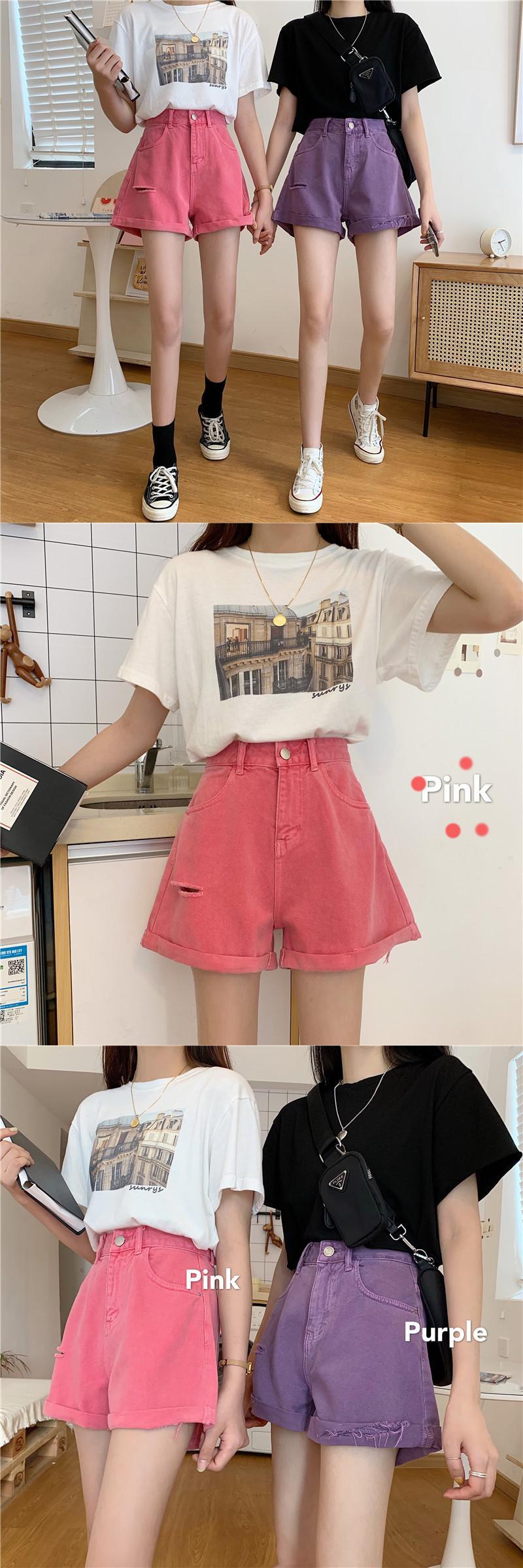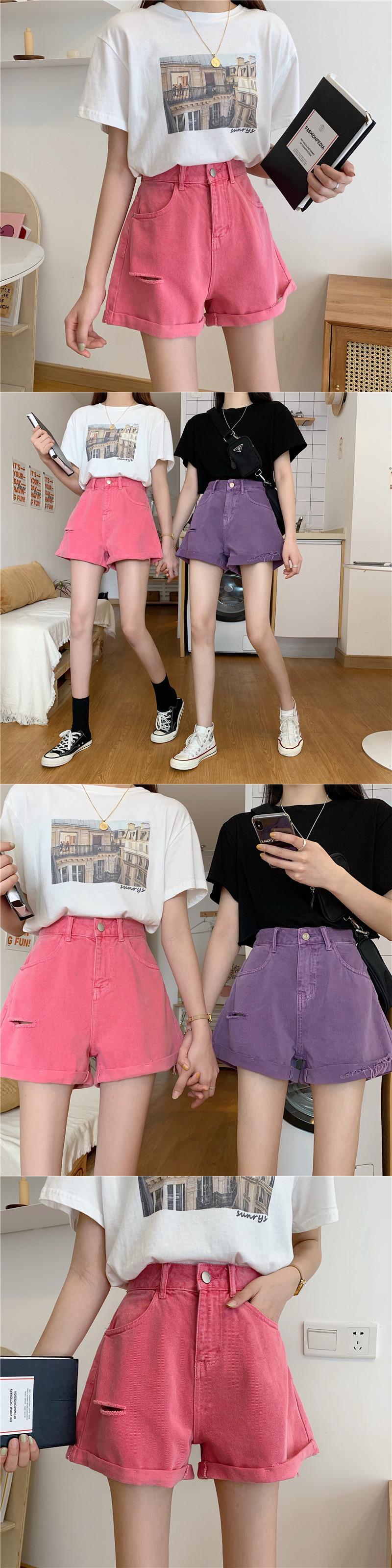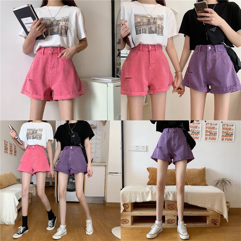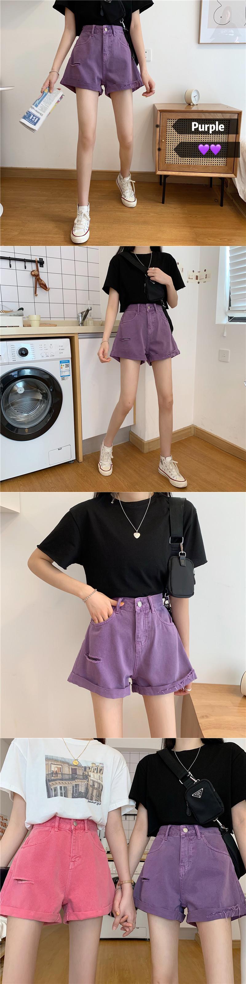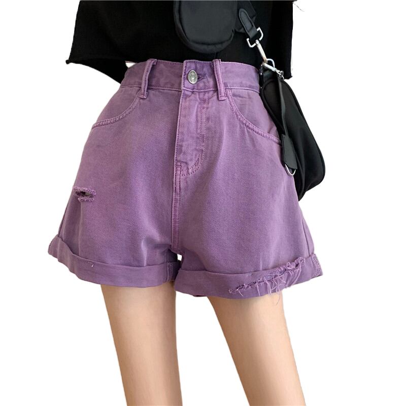 2020年夏の新作レディースハイウエストルーズルックシンワイルドワイドレッグパンツレトロパープルデニムショートパンツトレンド 1号婦人31454559804