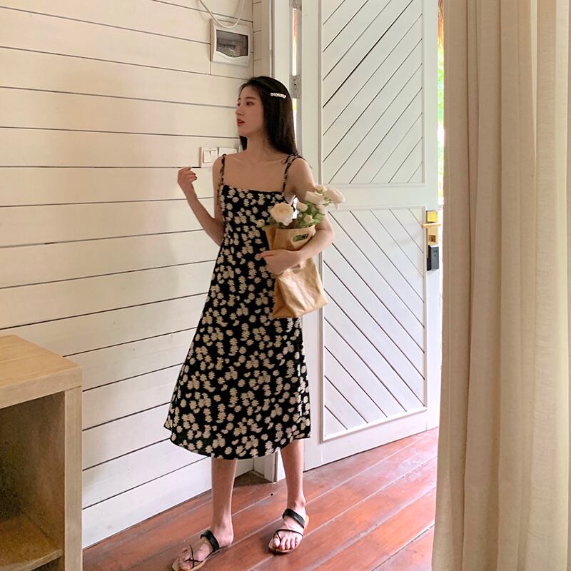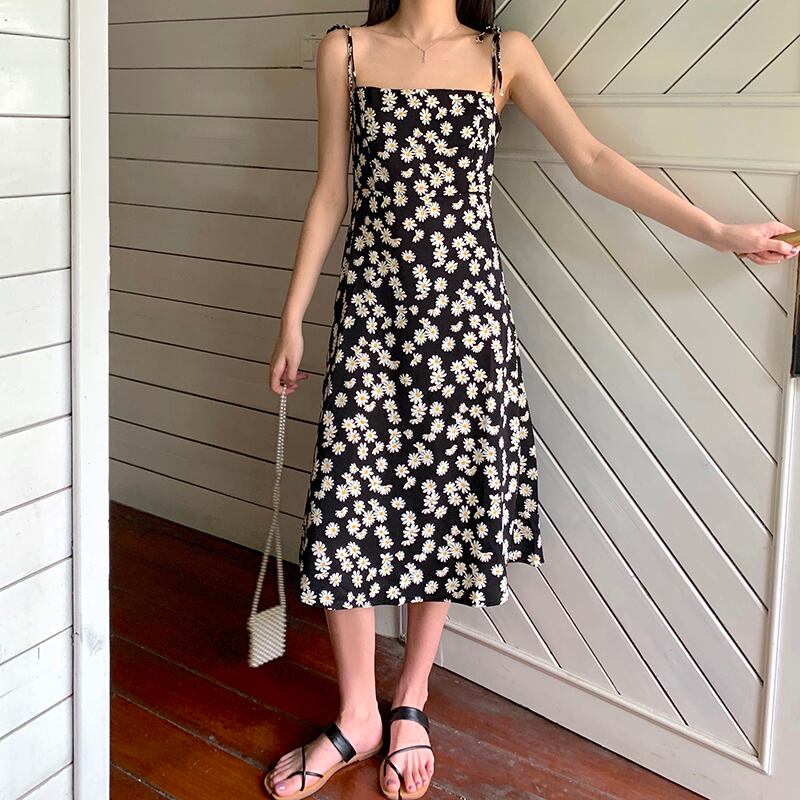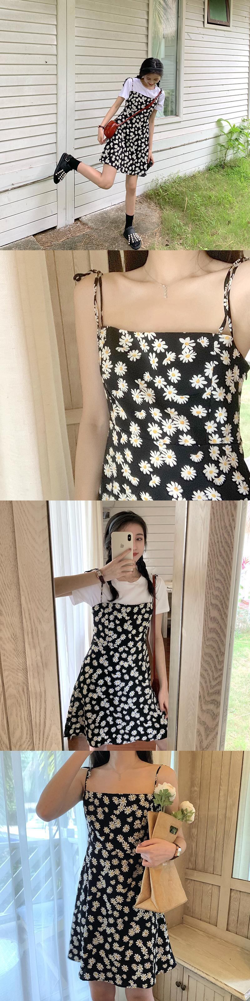 非常に妖精のトップデザインセンスニッチaラインスカートフローラルデイジーサスペンダードレス女性XiaXuanエレガントなスタイル 1号婦人90121189592