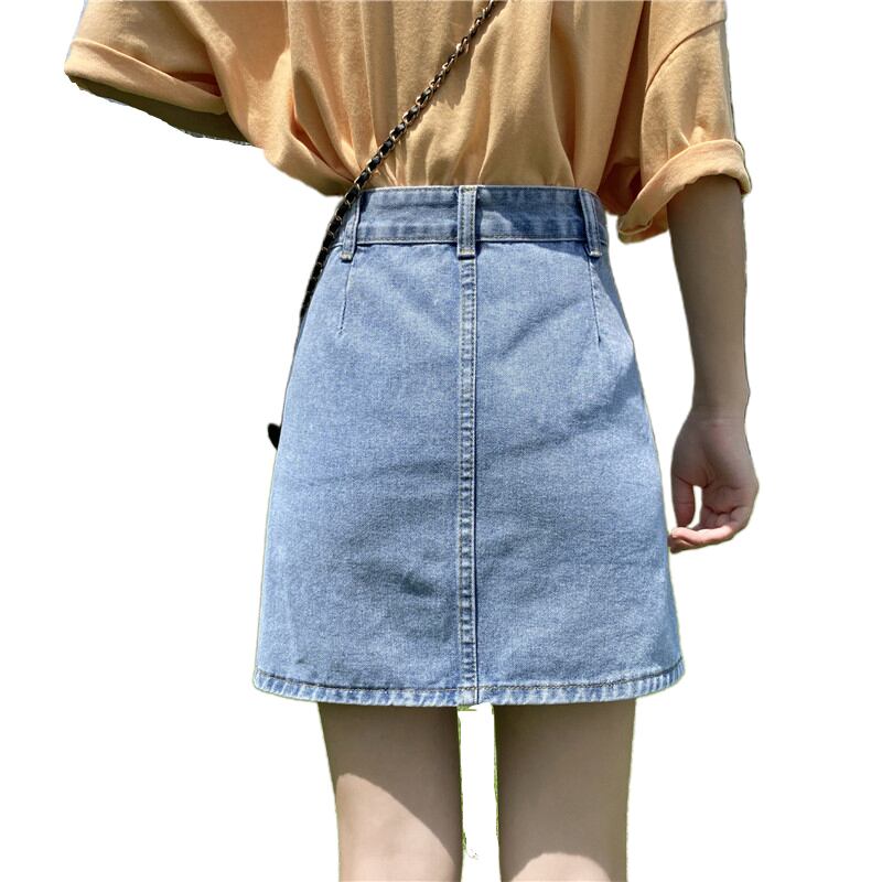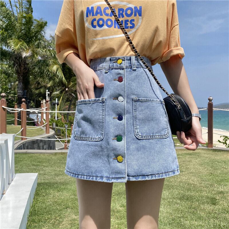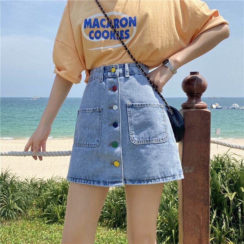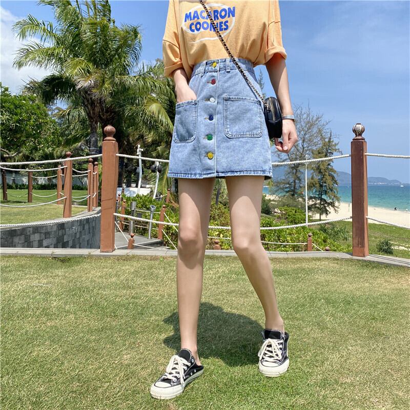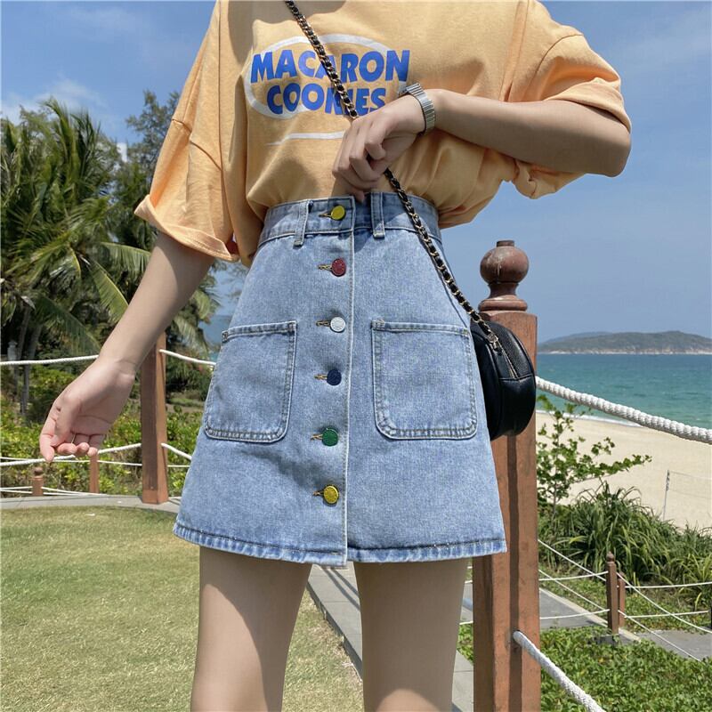 2020年夏新作香港風レトロデニムスカートカラーシングルブレストハイウエストスカート女子学生Aラインスカート 1号婦人9635405471