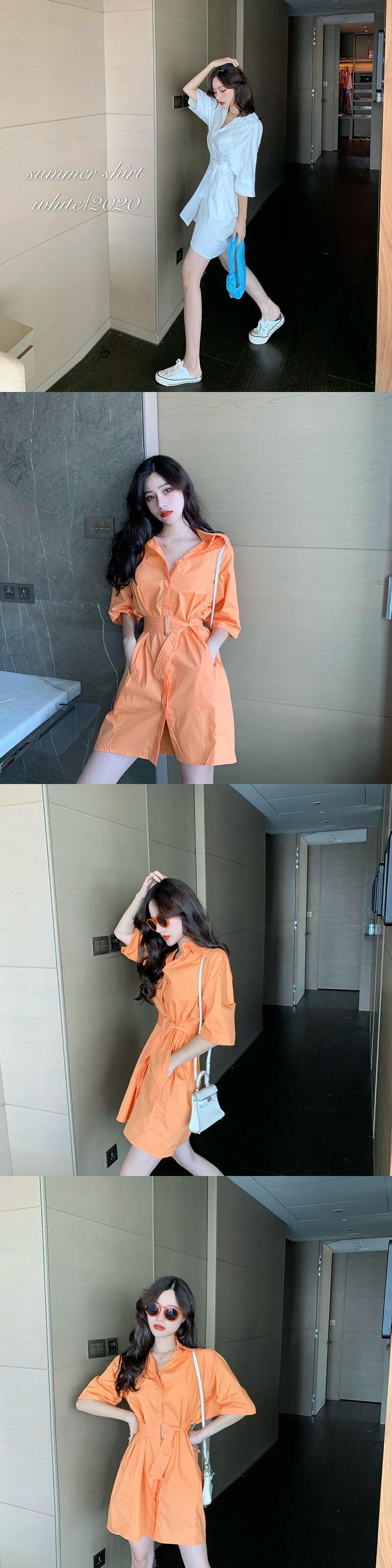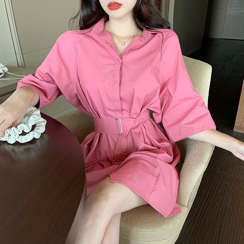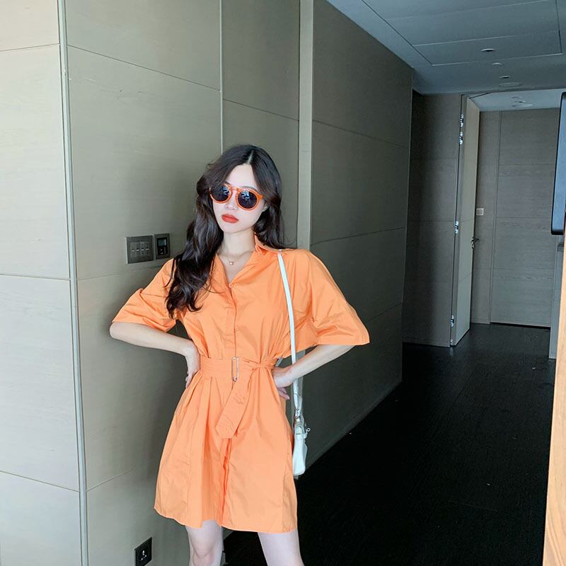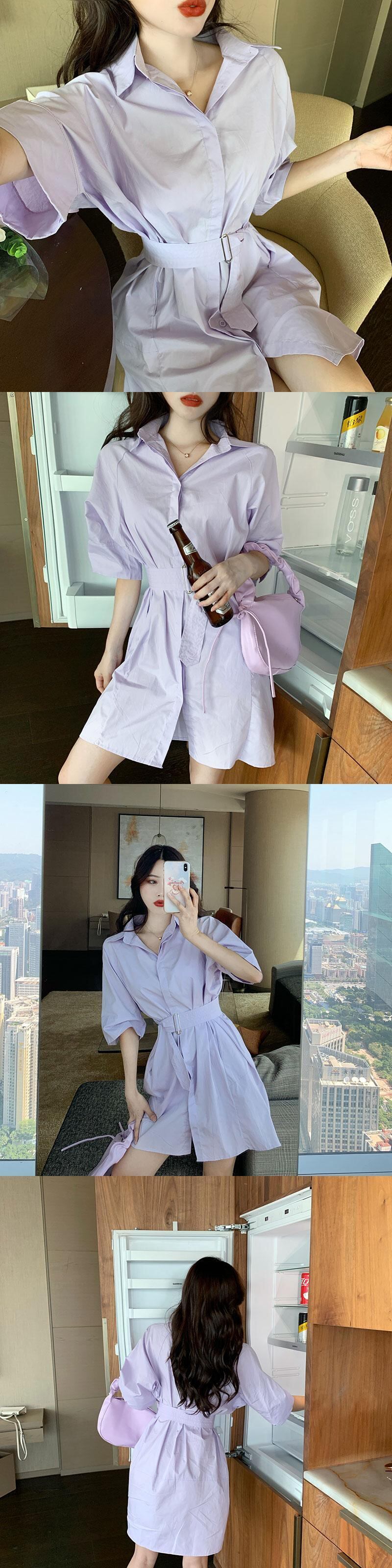 ウエスタン気質シャツドレスレディースサマードレス2020ニューウエスト細いAラインスカートルーズパープルショートスカート 1号婦人64966898781