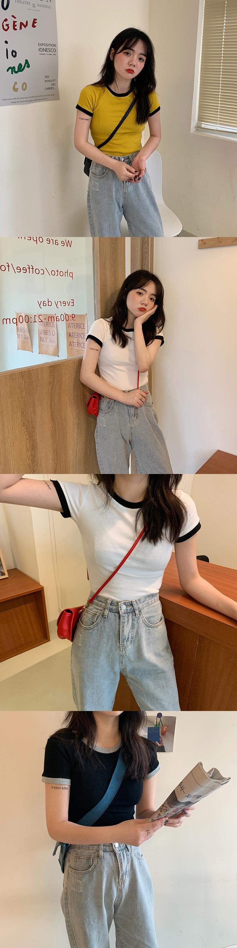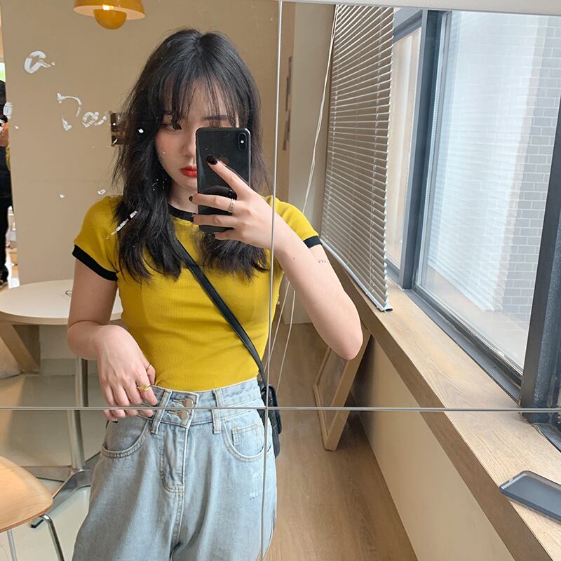 半袖Tシャツ2020新しい女性の夏の学生のカラーマッチングコンピオネートスリム痩身ボトミングシャツクロップトップ 1号婦人79333079601