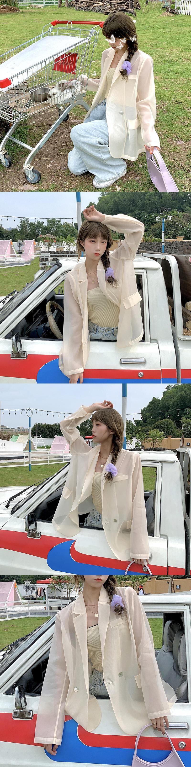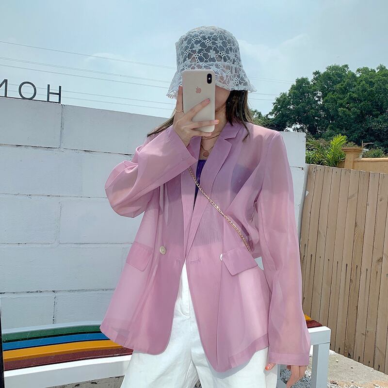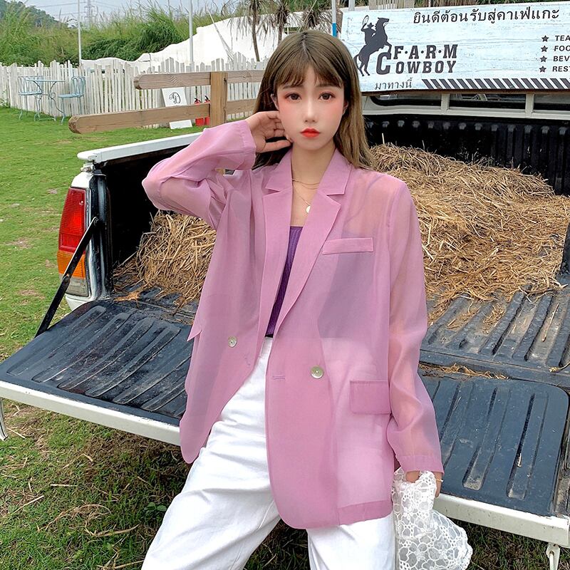 2020年夏の新しい流行のデザインセンス薄いシースルースーツジャケットルーズサンプロテクションシャツ長袖スーツジャケット女性 1号婦人98534034780