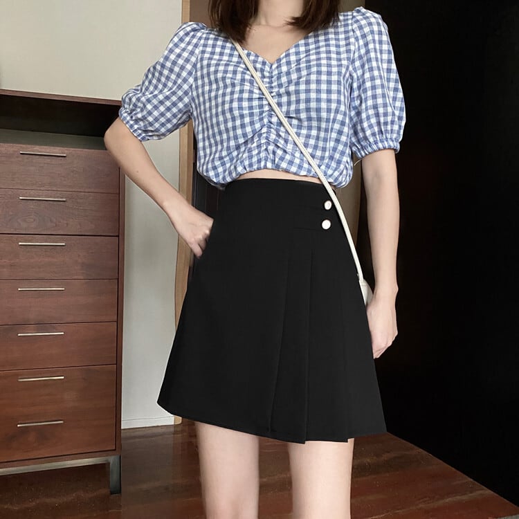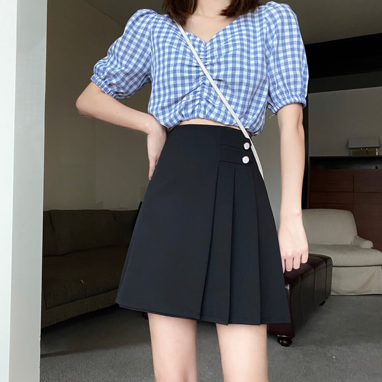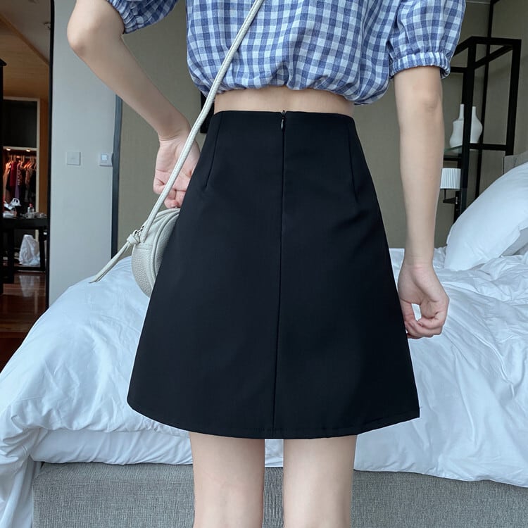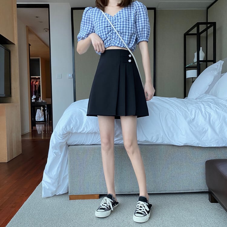 ウエスタン気質プリーツスカート女性夏新作スタイルカレッジスタイルハイウエスト細いAラインショートスカートブラックスカート 1号婦人796058097
