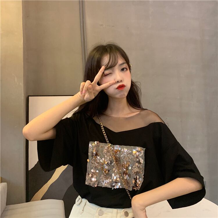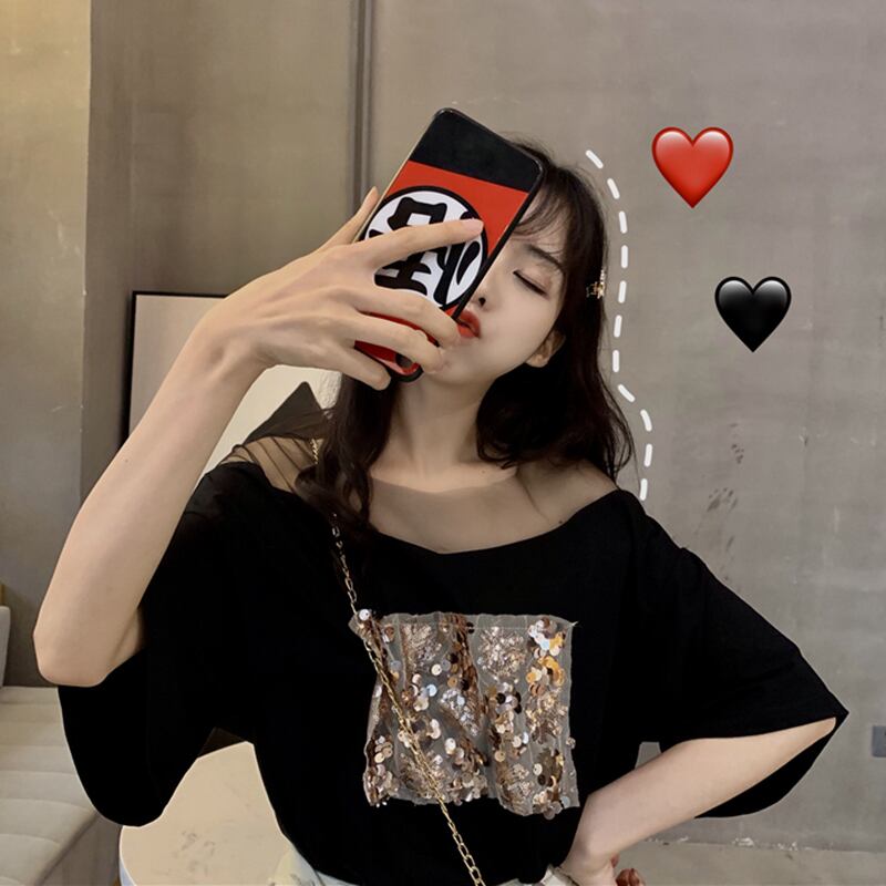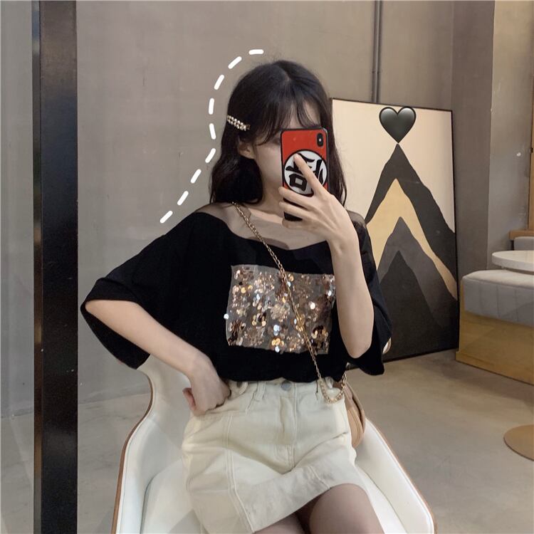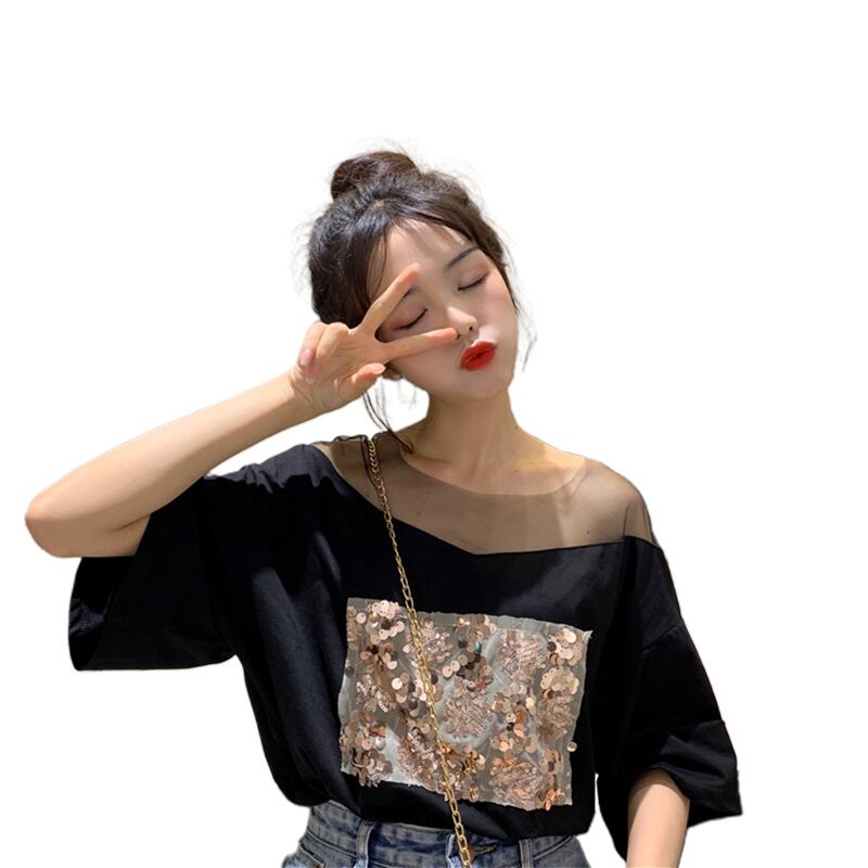 ネットレッドウエスタンスタイルステッチ半袖Tシャツレディース2020年夏ワイルドルーズブラックボトミングシャツトップの新バージョン 1号婦人10551497313